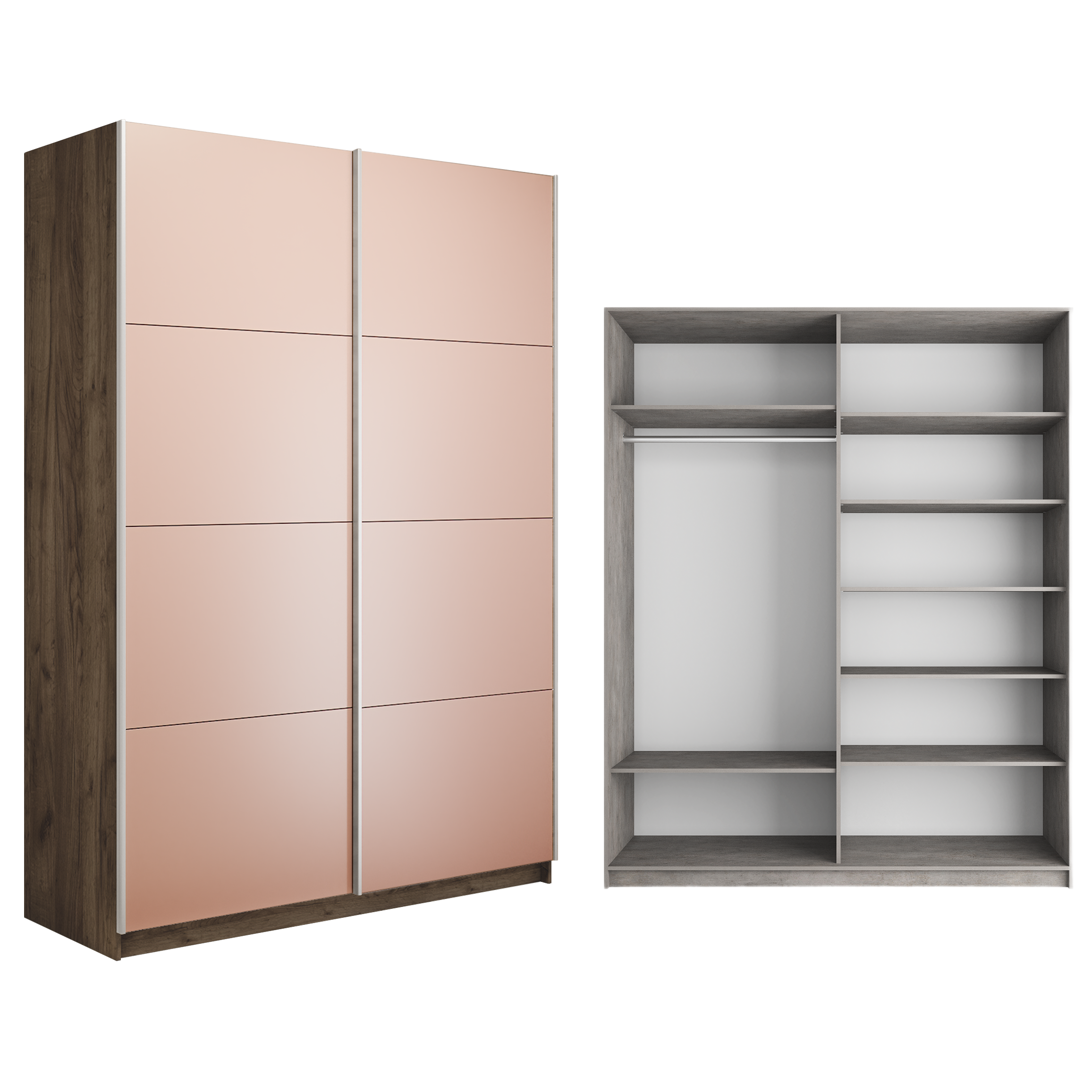 Особенности модели:- Продуманная система хранения – шкаф оснащён двумя отделениями: первое с полками для стопок белья и вещей, второе с антресольной и нижней полками и горизонтальной хромированной штангой для одежды на плечиках.