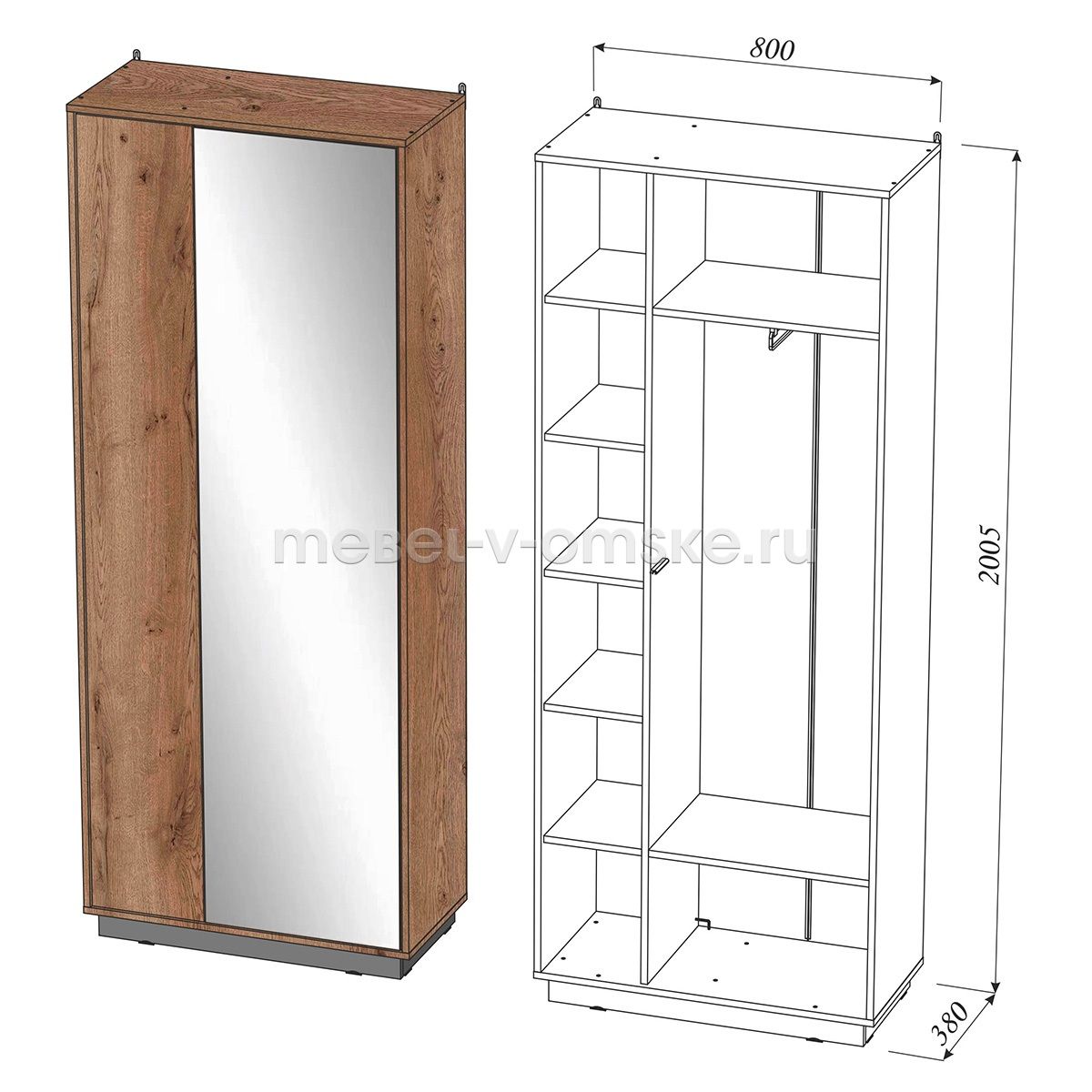 Ширина габаритная800 ммВысота габаритная2005 ммГлубина габаритная380 ммУгловойнетТип дверейраспашныеЧисло дверей2Материал фасадовЛДСП + зеркалоВыдвижные ящикинетШтангавыдвижная (микролифт)Материал корпусаЛДСПЗеркалоестьПоставкав разобранном видеПроизводствоОмскГарантия12 месяцев -