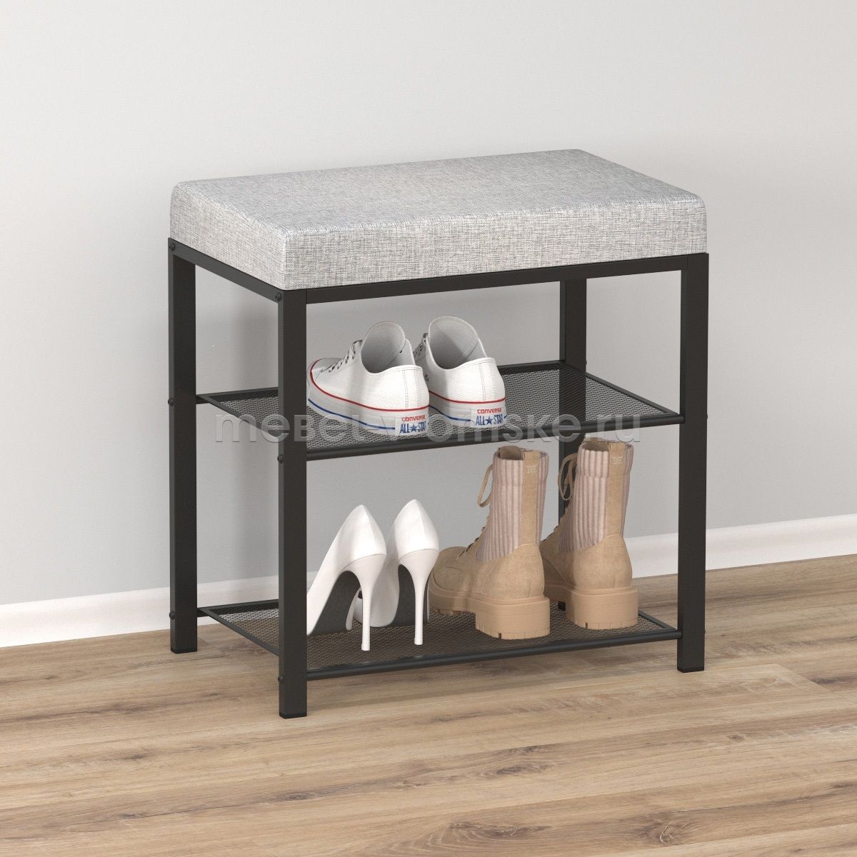 Поможет удобно разместиться, чтобы надеть или снять обувь, а также просто присесть после прогулки.