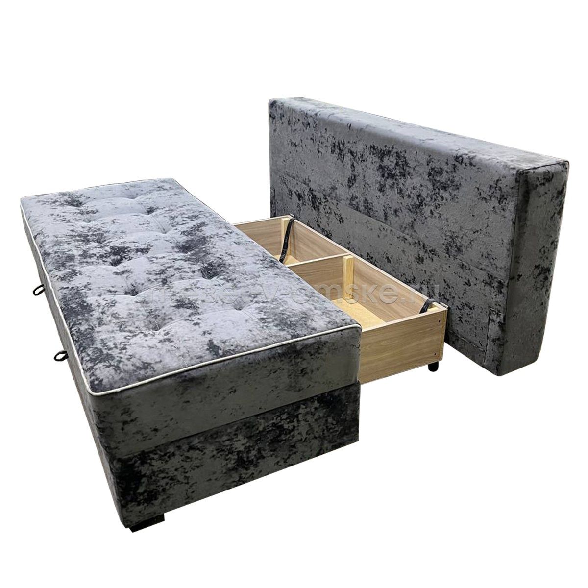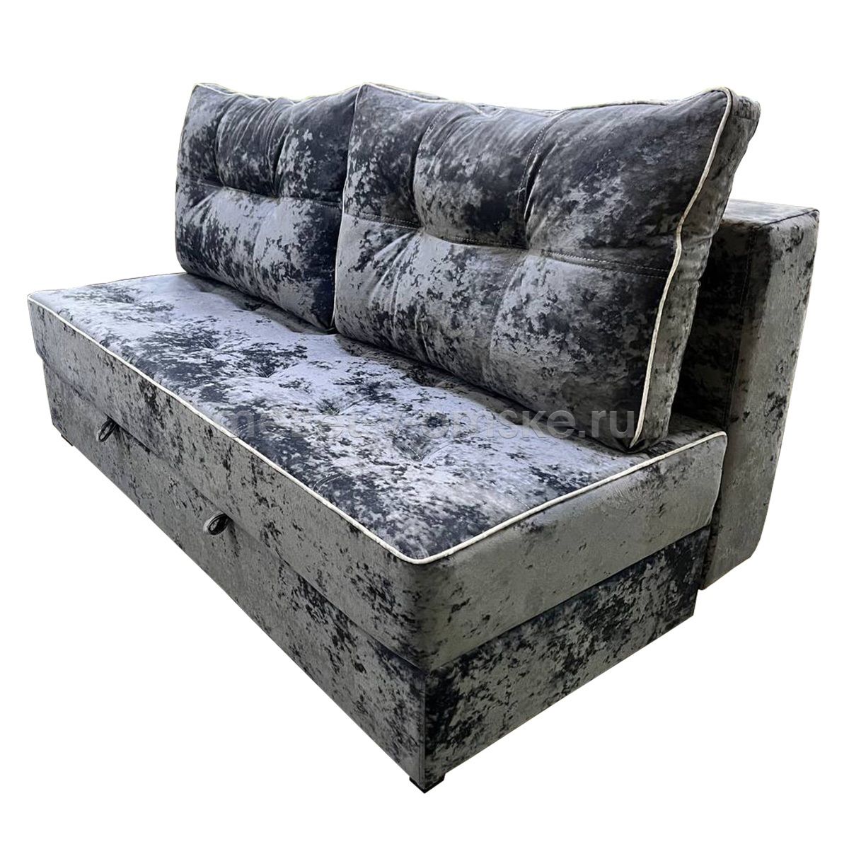- Ящик. Под сиденьем дивана скрыт вместительный ящик для белья – практичное решение для хранения постельных принадлежностей, подушек или других вещей, экономящее пространство в комнате.