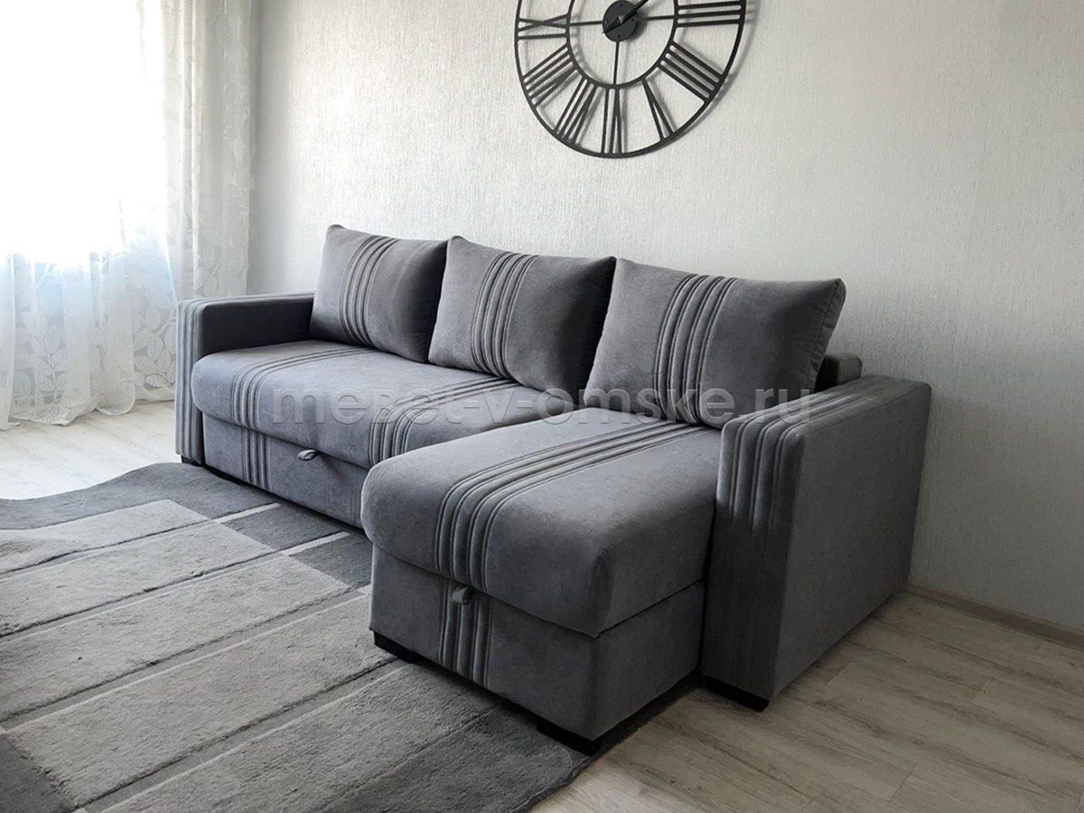 Угловой диван «Гранд-2» с оттоманкой станет изысканным акцентом вашей гостиной или квартиры-студии, создавая уютное пространство для отдыха. В разложенном виде модель превращается в комфортное спальное место, дополненное изящной планкой, которая бережно защищает от соприкосновения со стеной. Для хранения постельных принадлежностей предусмотрен стильный бельевой короб, сочетающий практичность и элегантность.
