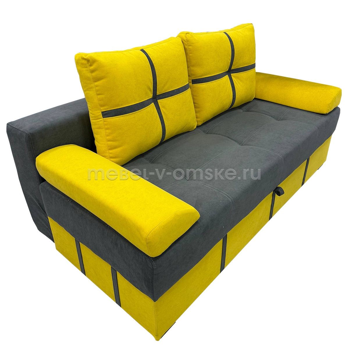 - Дизайн. Диван украшен двумя подушками, заменяющими спинки, и двумя подушками-подлокотниками, крепящимися на липучке. Так же декоративные прострочки со вставками придают дивану шарм и изысканность.