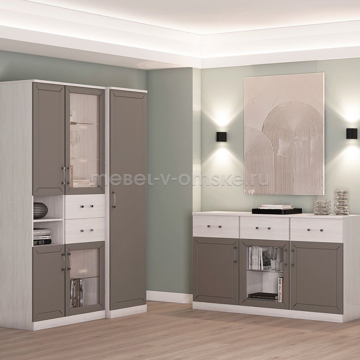Цвет: ЛДСП Ясень Анкор Светлый, МДФ Глиняный Серый.