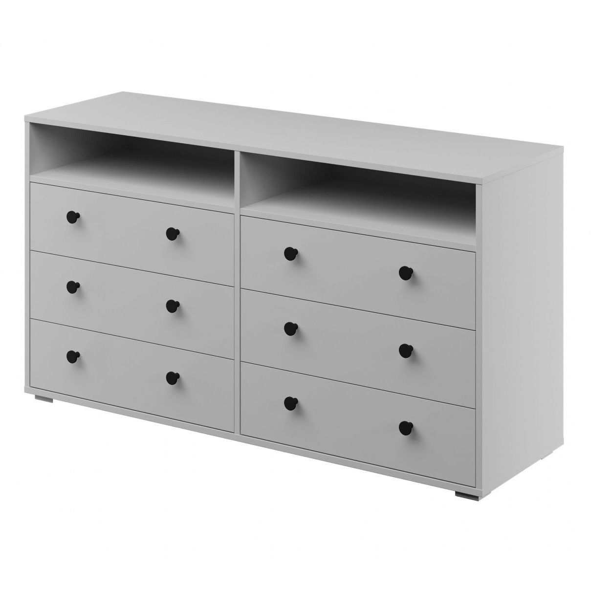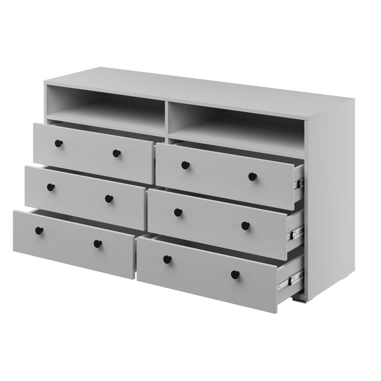 Конструктив: Комод "Оскар" предлагает оптимальное решение для хранения. Шесть вместительных выдвижных ящиков позволят аккуратно разместить одежду, постельное белье и другие необходимые вещи. Две открытые ниши над ящиками идеально подойдут для декоративных элементов, книг или часто используемых предметов, которые всегда должны быть под рукой.