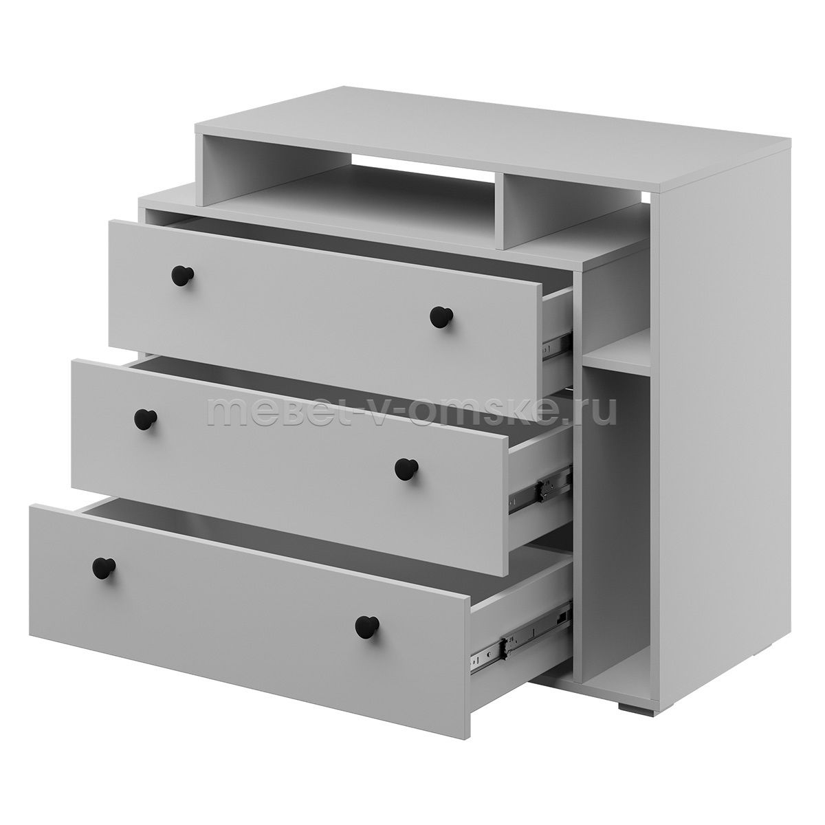 - Конструктив. Комод "Оскар" оснащен тремя вместительными выдвижными ящиками, которые обеспечат удобное хранение белья, одежды и других необходимых вещей. Надстройка с открытыми полками станет идеальным местом для размещения декоративных элементов, книг или любимых фотографий, добавляя вашей спальне уюта и индивидуальности.