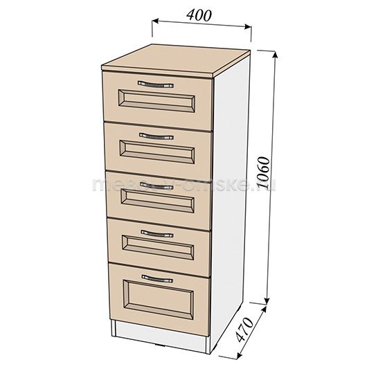 Гарантия12 месяцевШирина габаритная400 ммВысота габаритная1060 ммГлубина габаритная470 ммЧисло ящиков5Материал фасадаМДФМатериал корпусаЛДСП + МДФНишанетДверцанетДекор фасадафрезеровкаТип направляющих в ящикахшариковыеВес38 кгКоличество упаковок3ПроизводствоОмскПоставкав разобранном виде -
