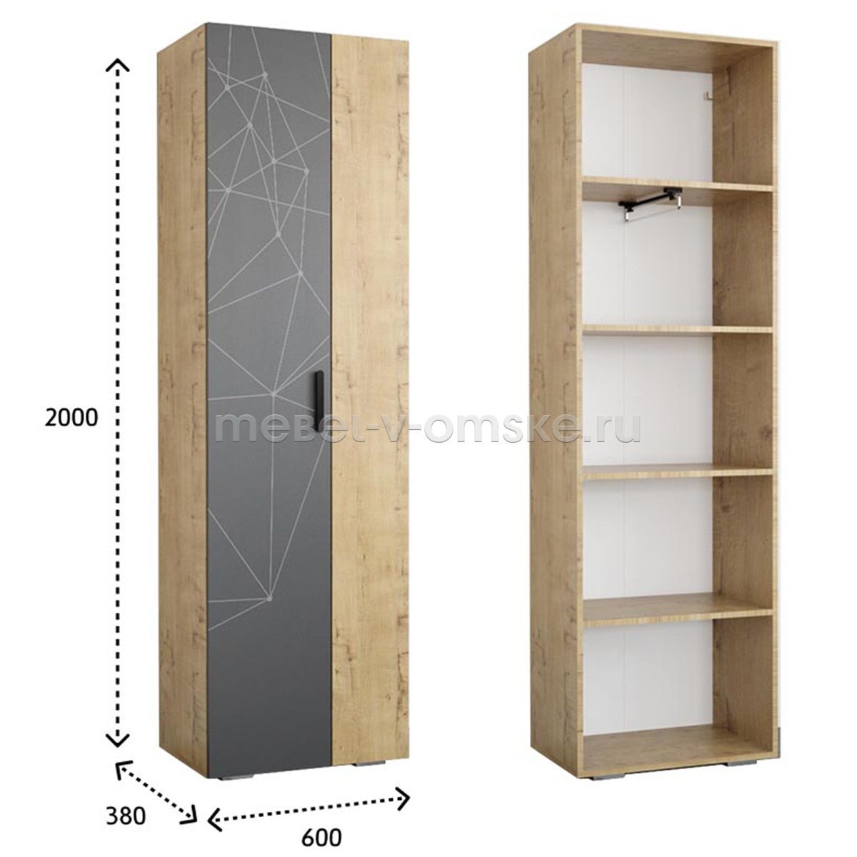 - Цветовое решение. Модель может быть выполнена в двух расцветках: Дуб Бунратти - Базальт, Сосна Винтерберг - Базальт.