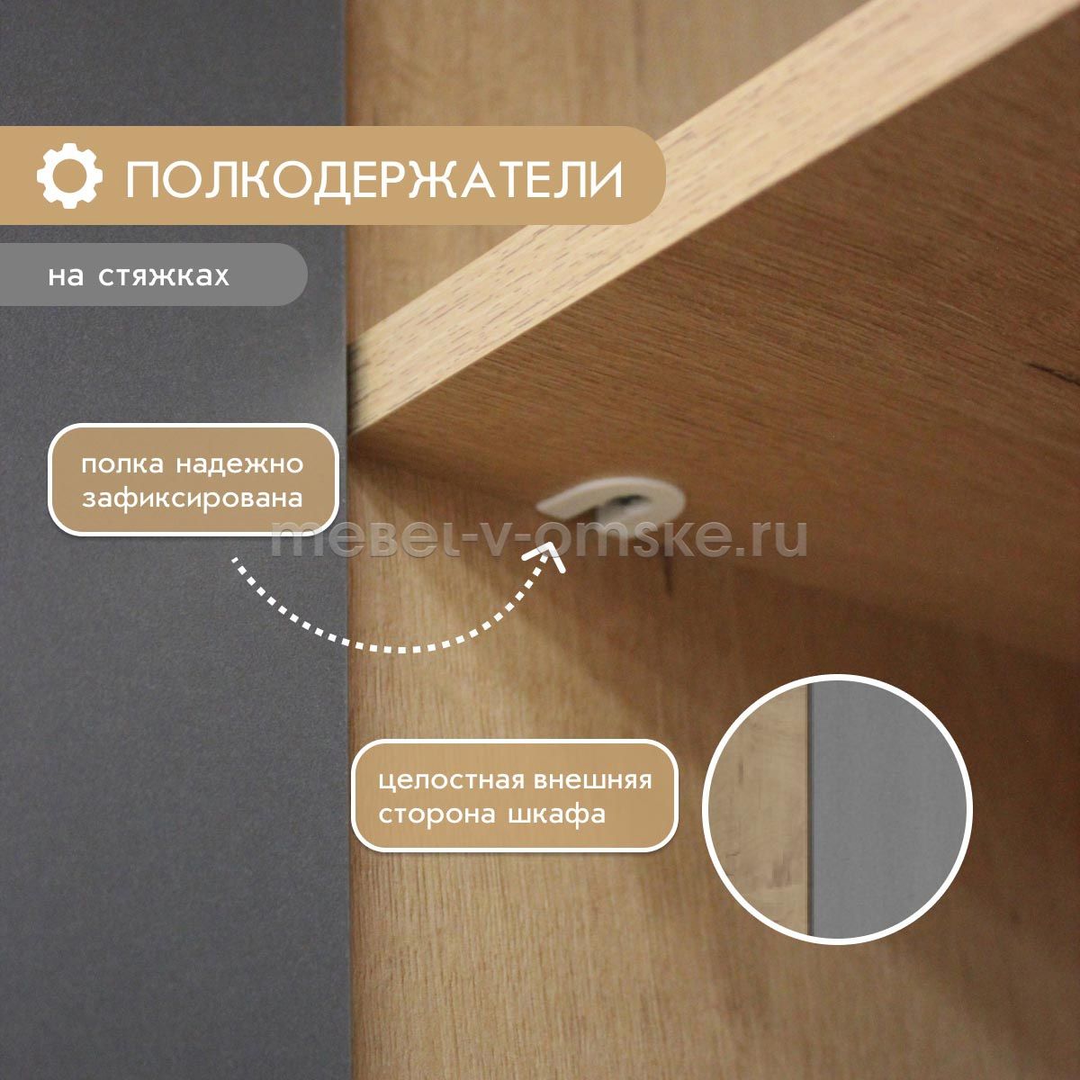 - Фурнитура.Комплект устанавливается на регулируемые опоры. Петли с доводчиком. Ручки выполнены из пластика 126 мм. Ящики установленны на шариковые направляющие. Полки ЛДСП установлены на металлические полкодержатели D5, стеклянные полки установлены на металлические полкодержатели D5 с присоской.