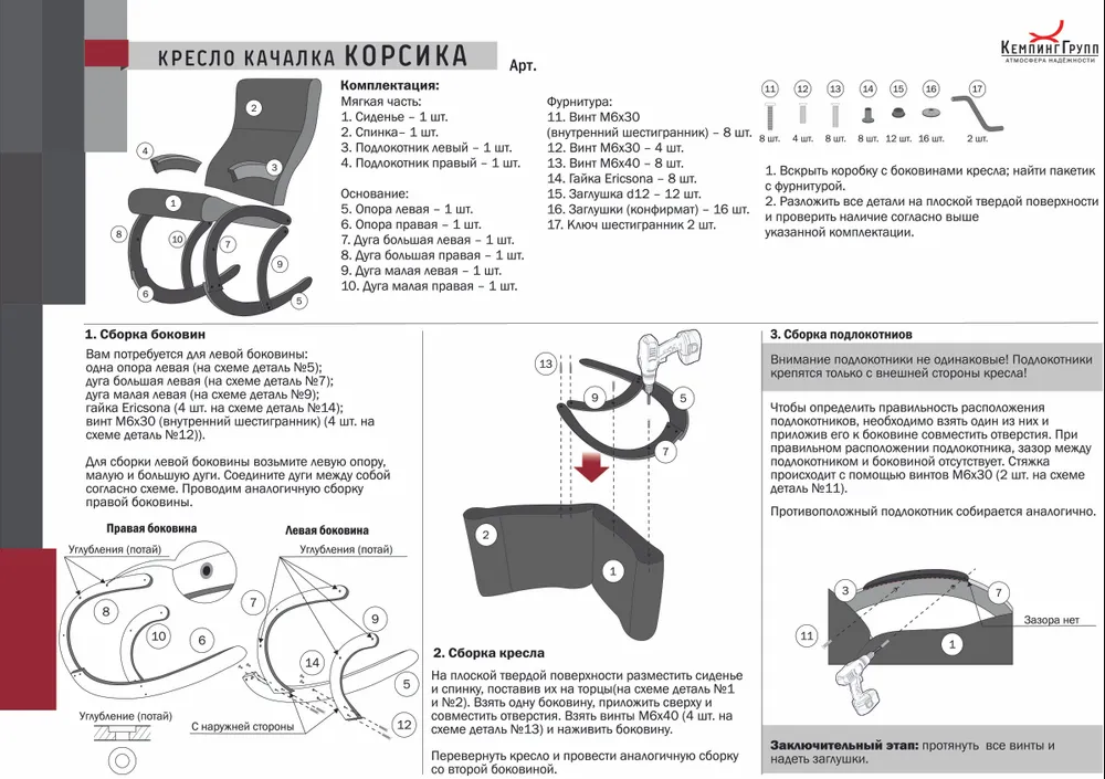 - Поставка. Кресло поставляется в разобранном виде.