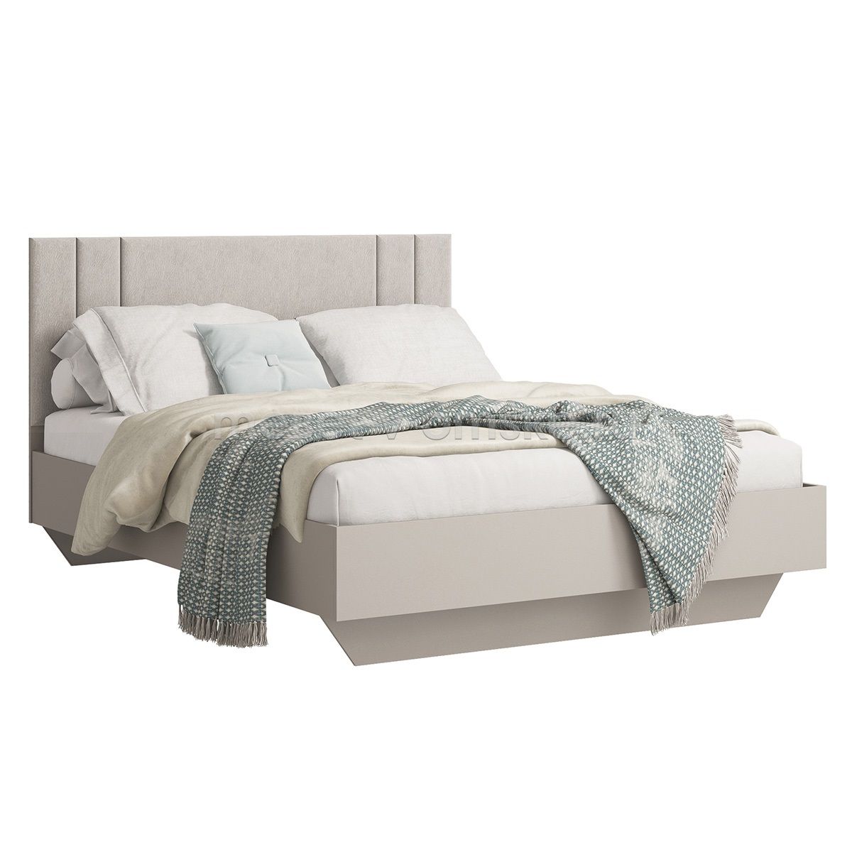 Центральным элементом комплекта является кровать Авелона. Высокое изголовье оито мягкой тканью, что удобно для чтения или просто отдыха перед сном.