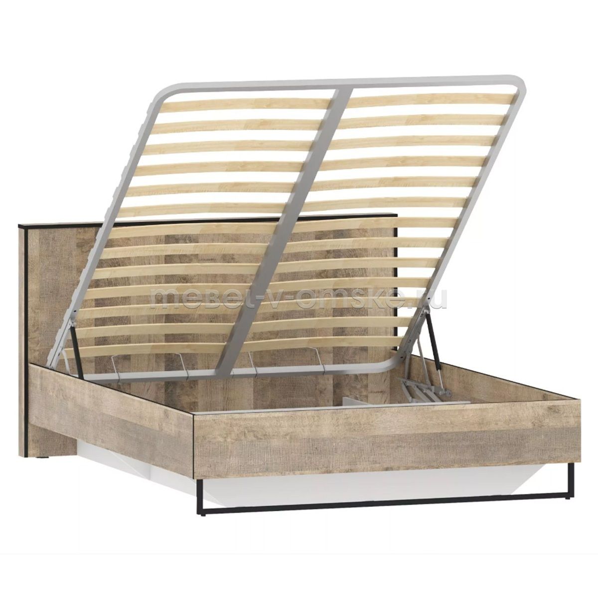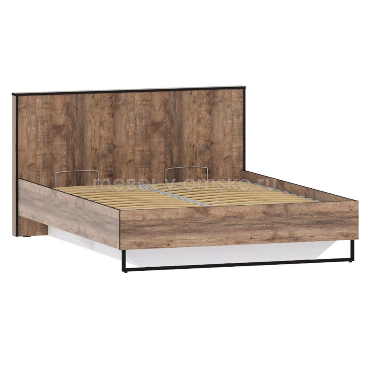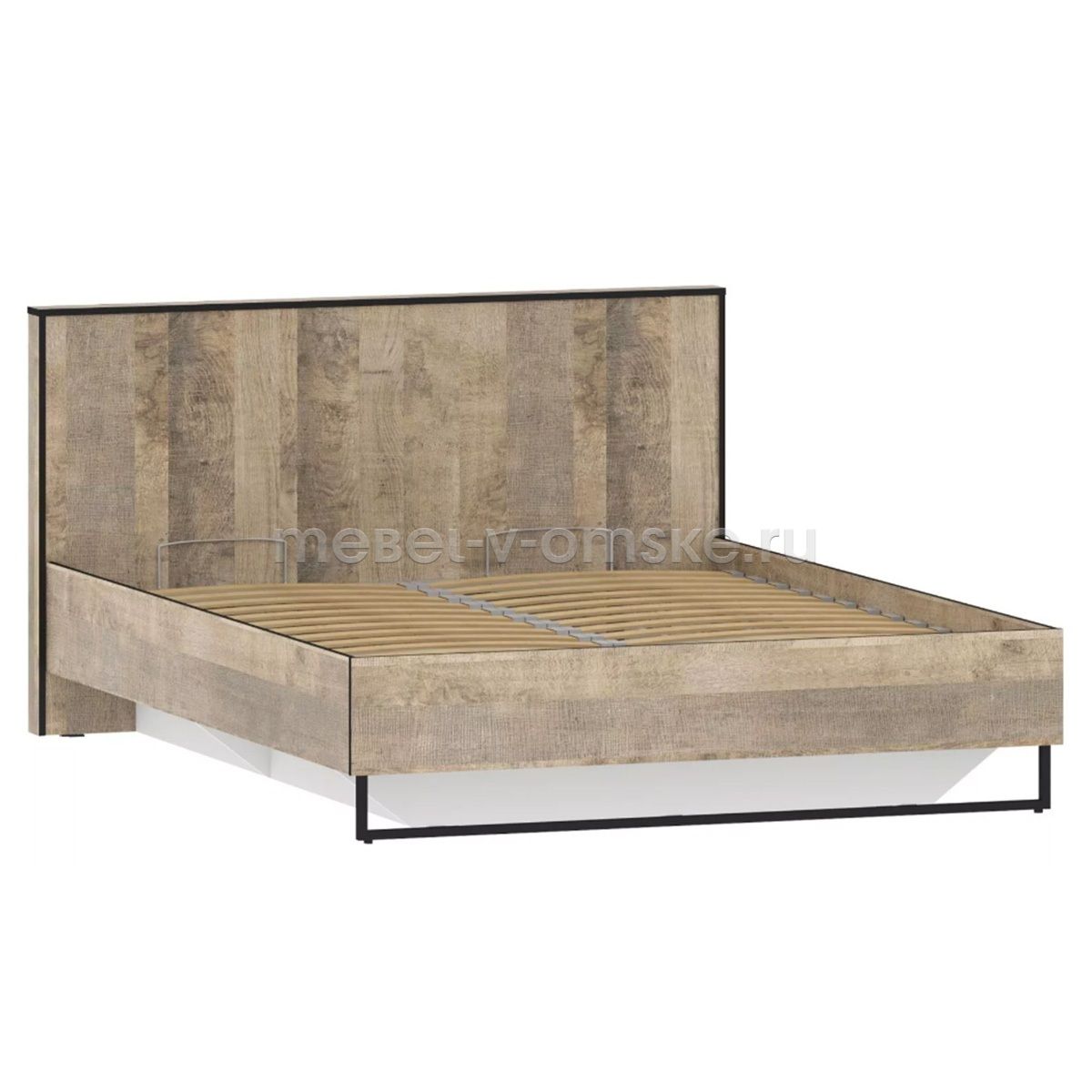 Кровать из коллекции ФОЛК легко впишется в интерьер спальни в стиле Лофт, придав ей современный и монументальный вид. Черные металлические опоры дополняют и подчеркивают оригинальный дизайн мебели, а черная кромка эффектно выделяет фасад изделия.