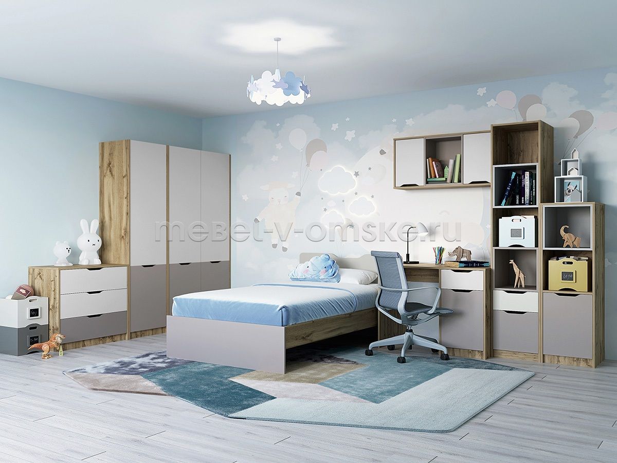 - Модульность. Кровать можно приобрести как самостоятельный предмет меблировки комнаты, а так же в сочетании с другими модулями детской Модена.