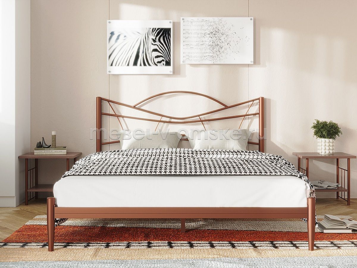 Гарантия18 месяцевШирина спального места1600 ммМатериал каркасаметаллПодъемный механизмнетДекор фасадовфигурная ковкаИзножьенетОснование под матрасортопедическое (входит в комплект)Ящик для бельянетМатрас в комплектенетПроизводствоГлазовПоставкав разобранном виде -