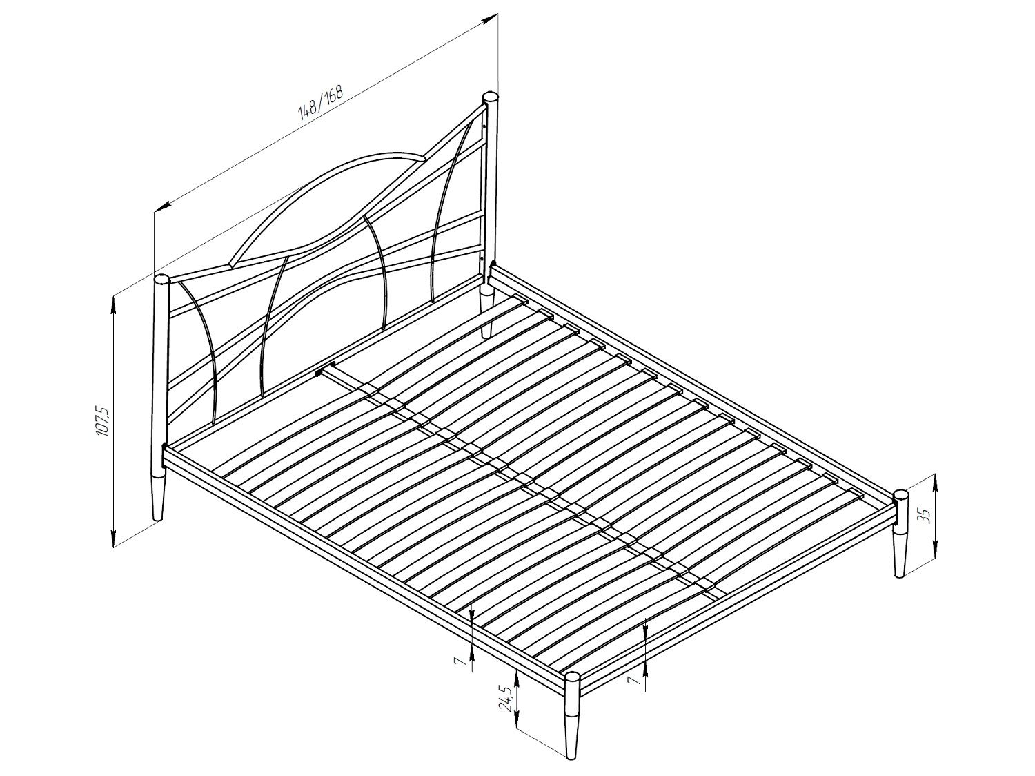 - Высота опор кровати - 350 мм.