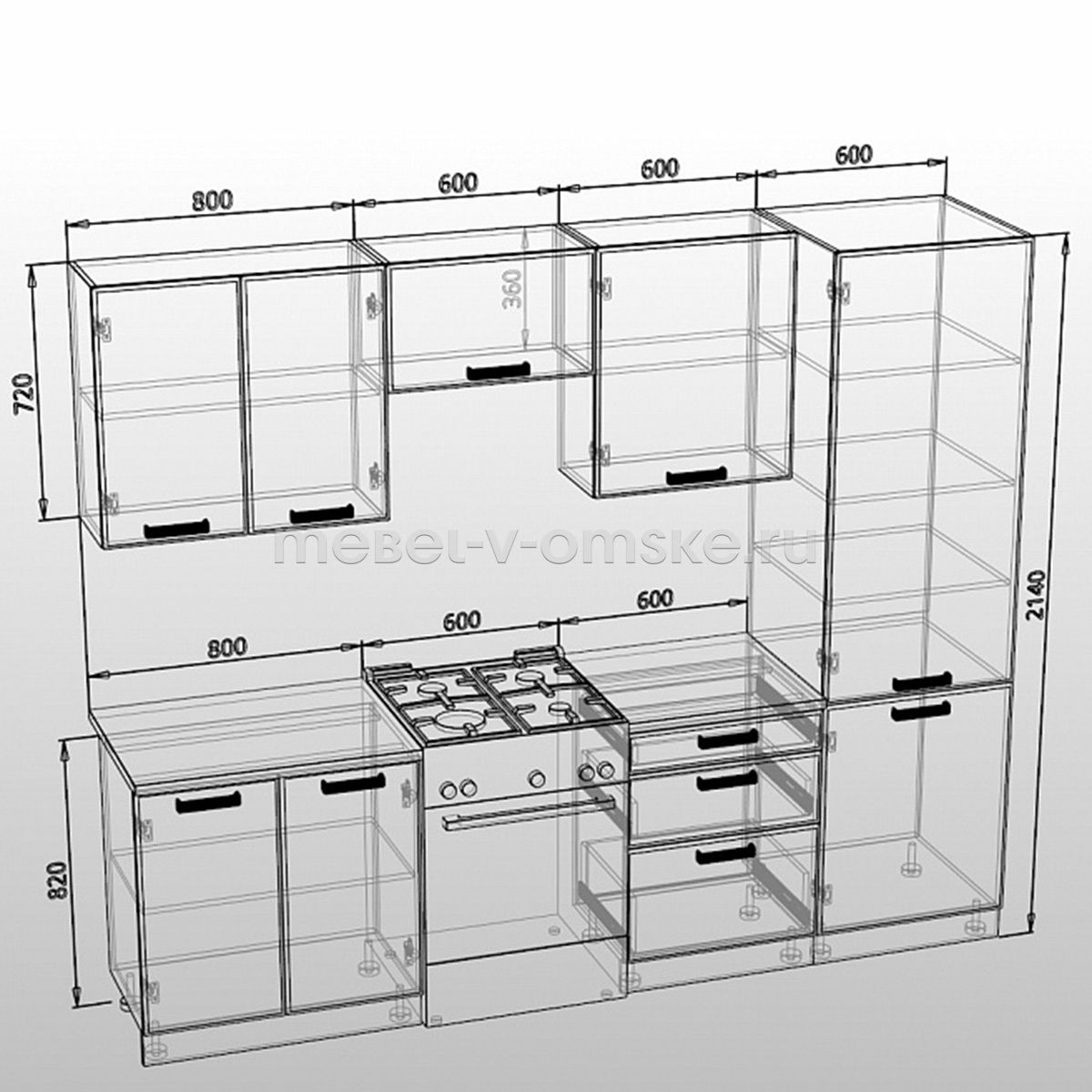 Габариты. Столешницы входят в стоимость гарнитура. Как именно Вам нужно распилить столешницу - напишите в комментарии при заказе кухни, и наши продавцы свяжутся с вами. На ваш выбор столешницы толщиной 26 мм., и 38 мм.