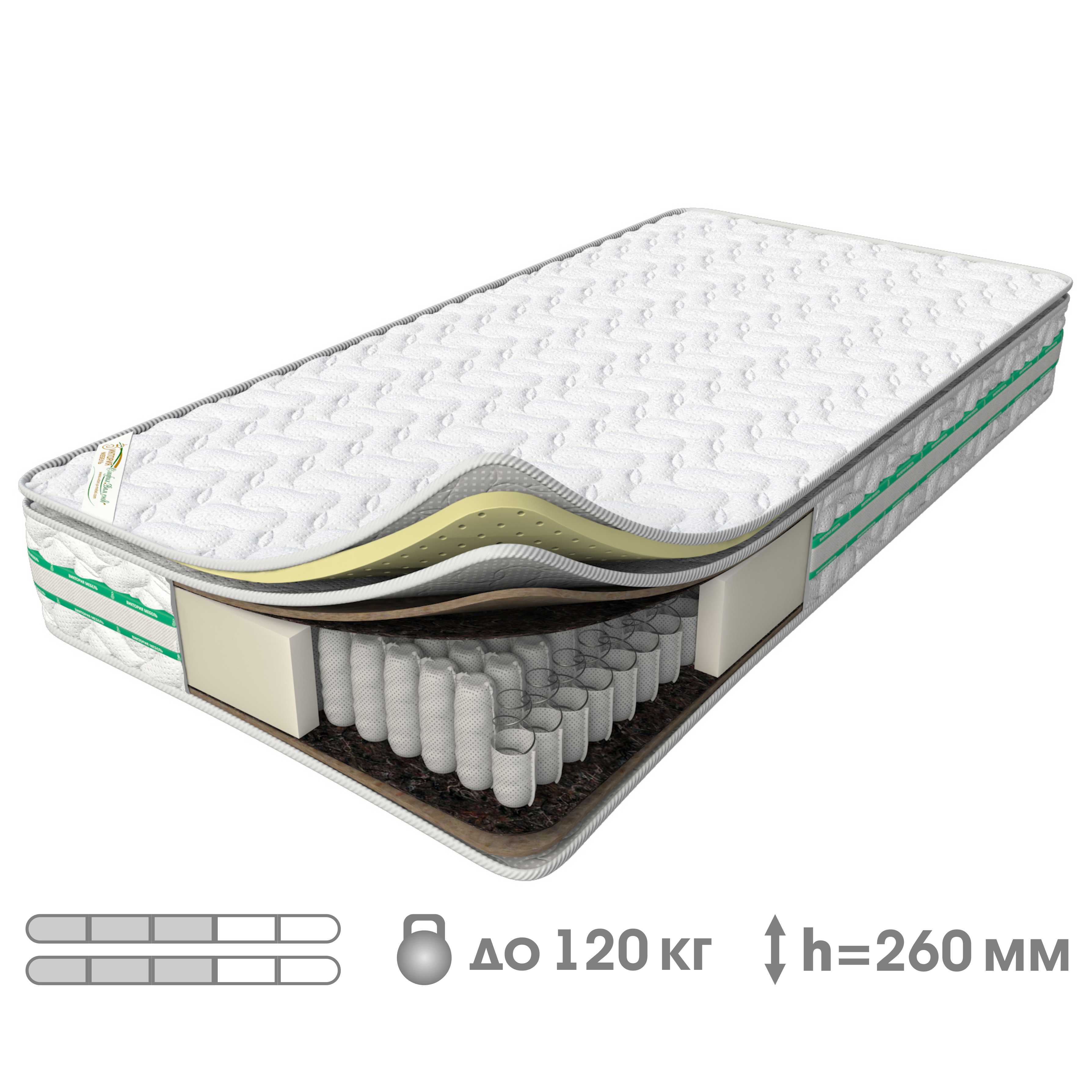 Гарантия18 месяцевШирина1600 ммВысота260 ммНагрузка на местодо 120 кг.Уровень жесткостисреднийОсноваНезависимые пружиныОбивкаТрикотажЛатексныйестьКокосовыйестьТип пружинНезависимые пружины "Стандарт"Высота пружин180 ммКоличество пружин на 1 кв.м.256ПроизводствоОмск -