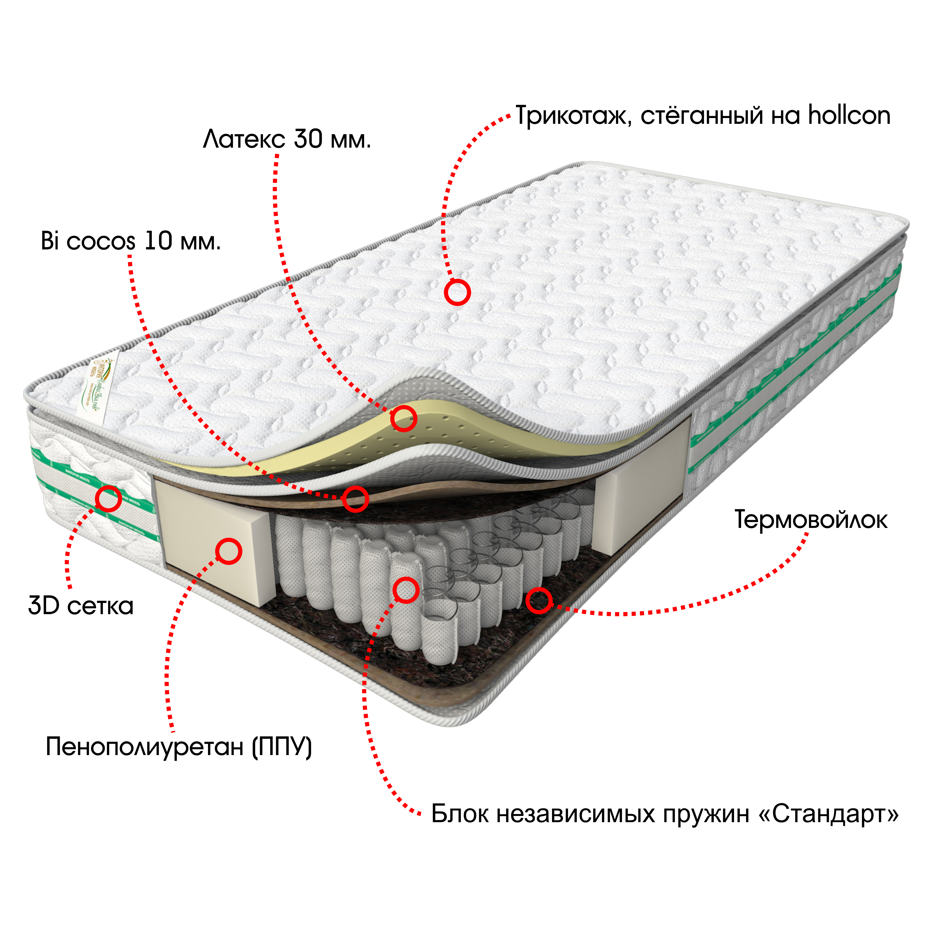 Bi-cocos в составе матраса способствует хорошей циркуляции воздуха и теплообмену, не вызывает аллергические реакции.