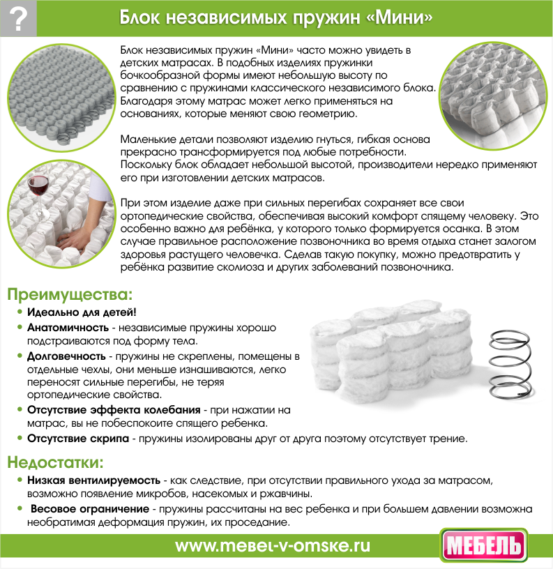 НовинкаестьГарантия18 месяцевШирина700 ммВысота160 ммДлина1600 ммНагрузка на местодо 70 кг.Уровень жесткостисреднийОсноваНезависимые пружиныОбивкаТрикотаж детскийДетскийестьКокосовыйестьТип пружинНезависимые пружины "Стандарт"Высота пружин120 ммКоличество пружин на 1 кв.м.256ПроизводствоОмск -