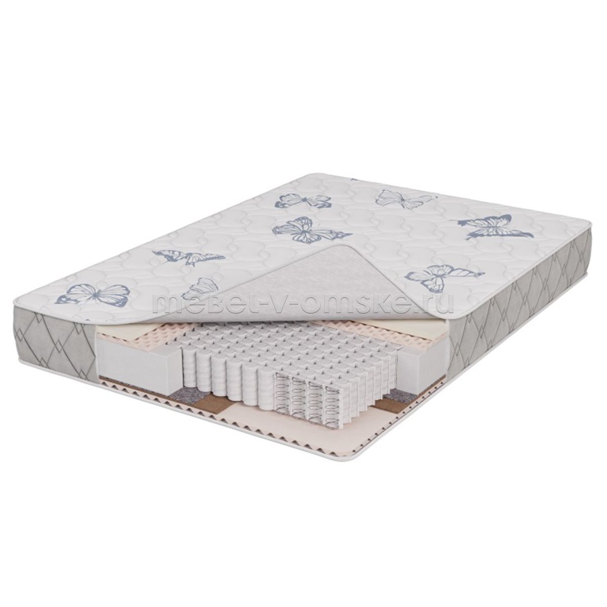 Современный комбинированный матрас с разным уровнем жесткости на пружинном блоке "мультипакет". Обеспечивает точечную поддержку тела и аккуратно повторяет его естественные изгибы. Сочетание с одной стороны ячеистой пены и ППУ с эфектом памяти придает матрасу мягкость. А наличие кокосовой койры с другой стороны матраса придает жесткость.