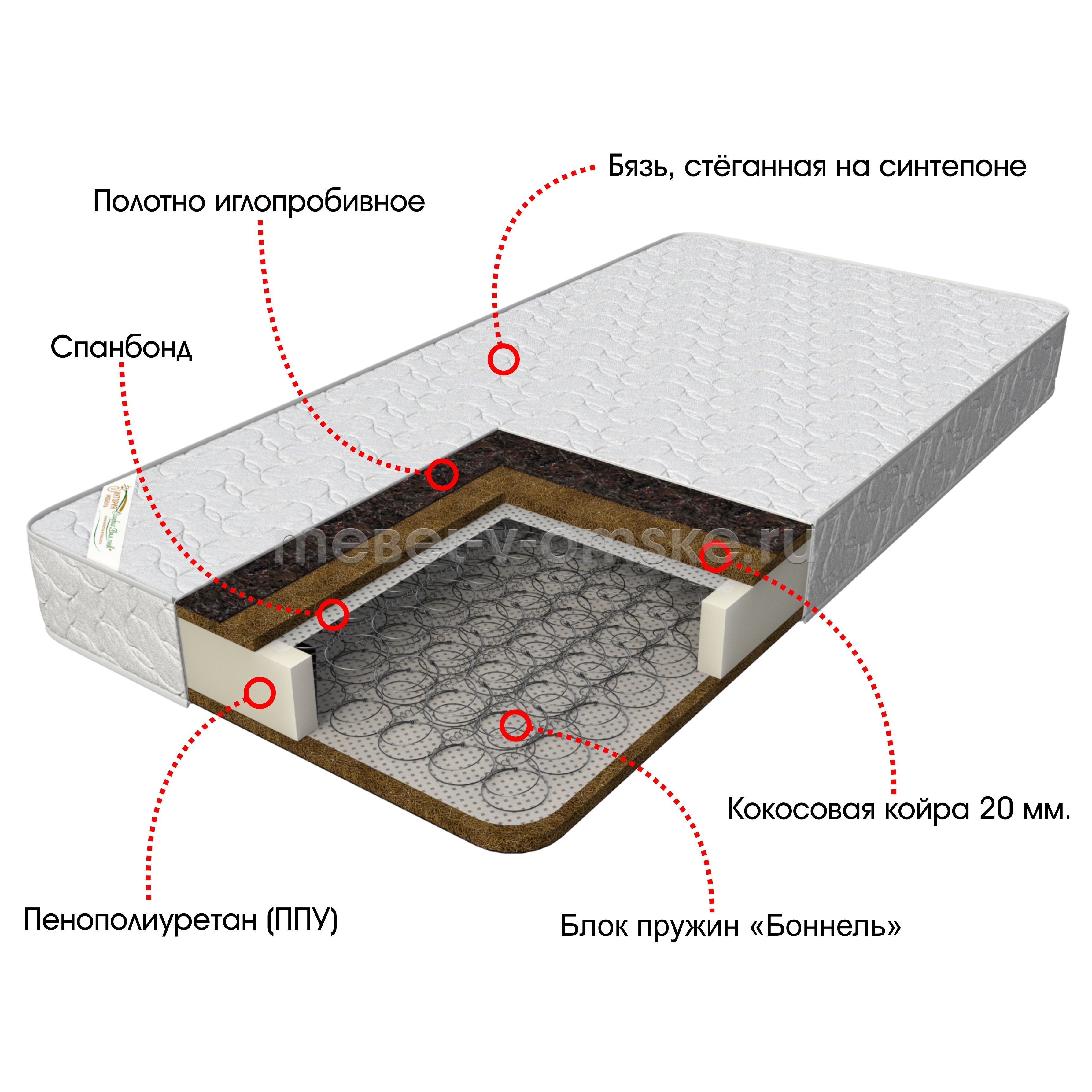 Спанбонд и иглопробивное полотно корректируют жёсткость матраса, сохраняют форму изделия, обладают высокой степенью прочности на разрыв.