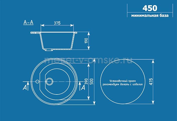 - Установка. Мойка врезная "U-103" подходит для кухонных столов от 450 мм.