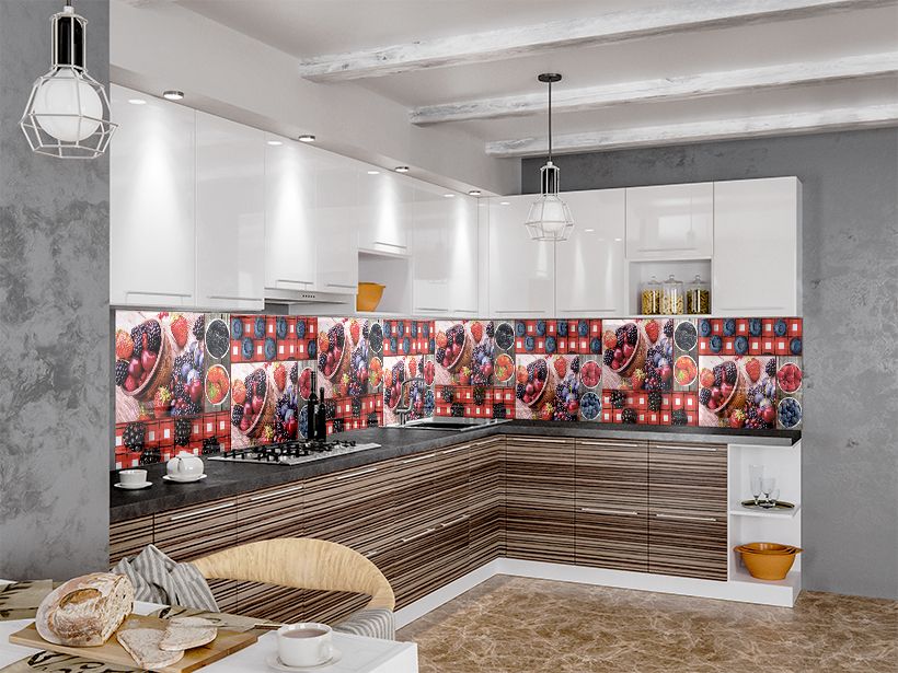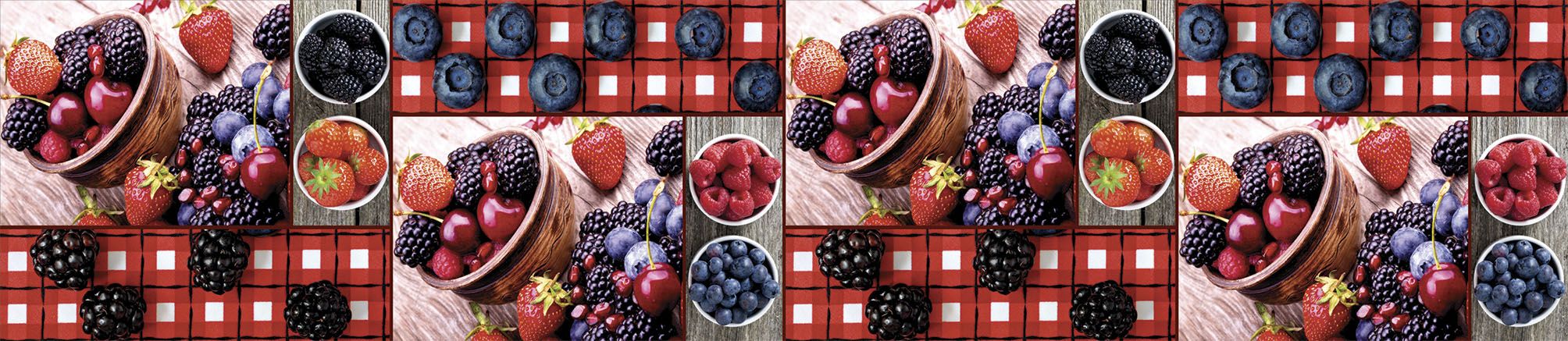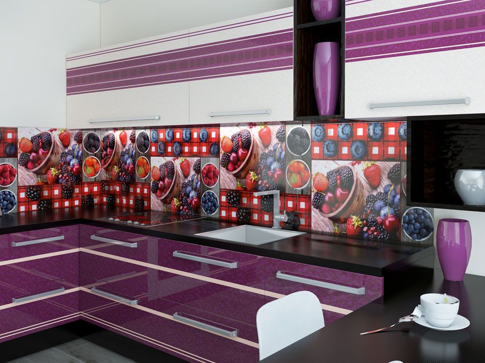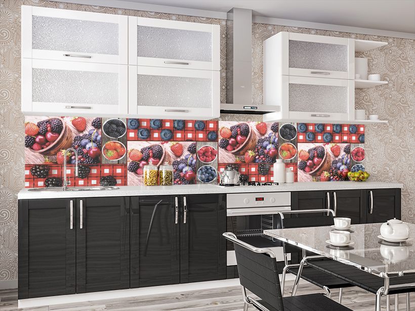 Кухонная панель с лесными ягодами эффектно будет смотреться как на фоне современного интерьера, так и в классически оформленном пространтсве. Сочные ягоды на незатейлевом фоне сыграют роль выразительной детали в рабочей зоне кухни.