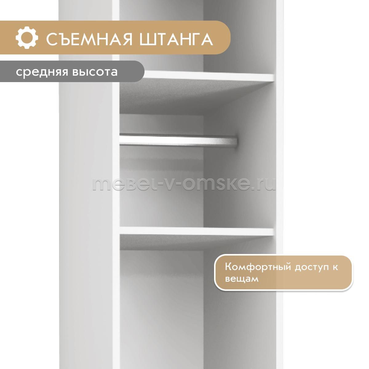 - Конструкция. Пенал оснащен полками различной высоты для одежды, а так же штангой для одежды.