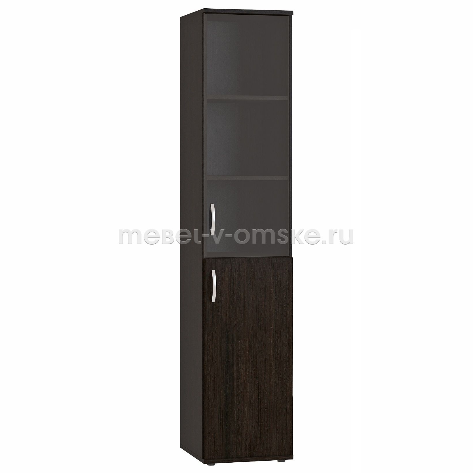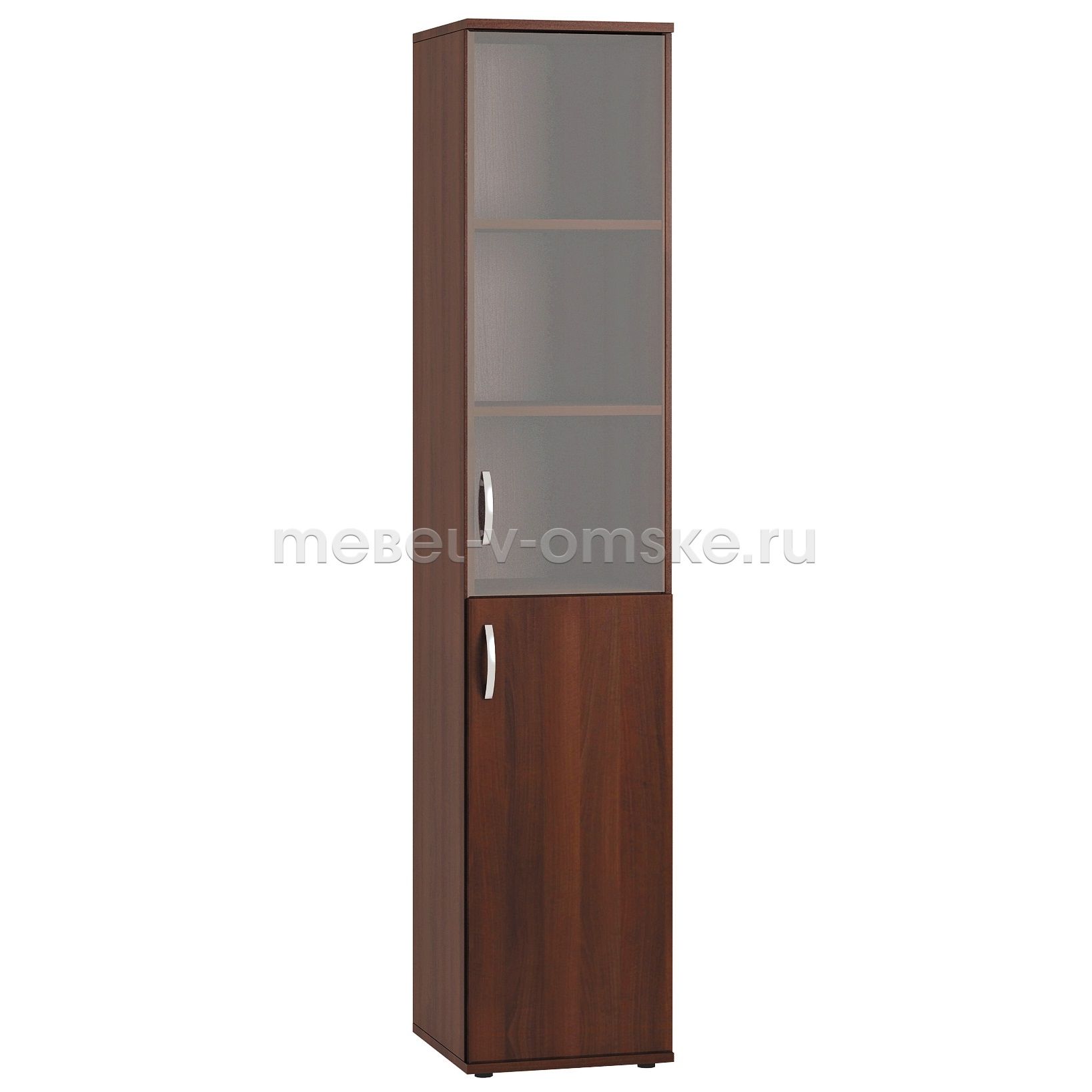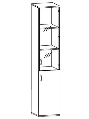 - Система хранения – шкаф-пенал оснащён двумя отделениями для хранения большого объема офисной документации: верхнюю часть полок закрывает стеклянная распашная дверца, нижняя часть закрыта глухой дверкой.