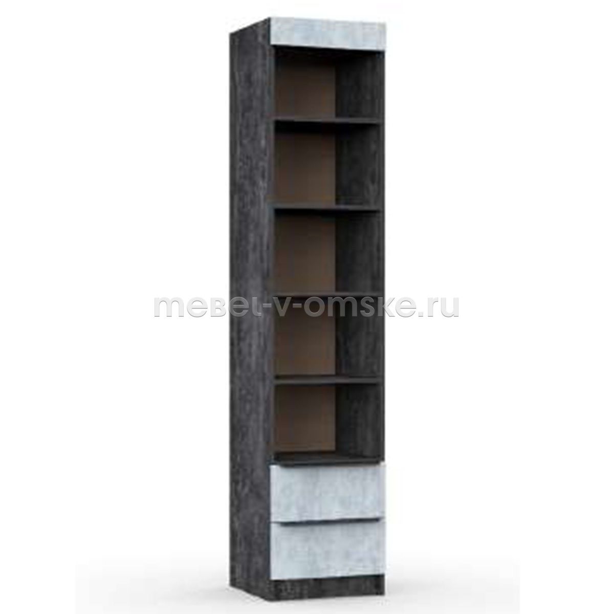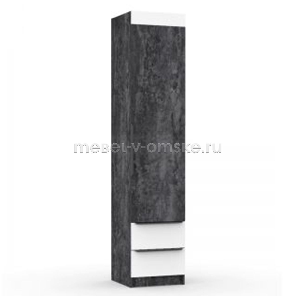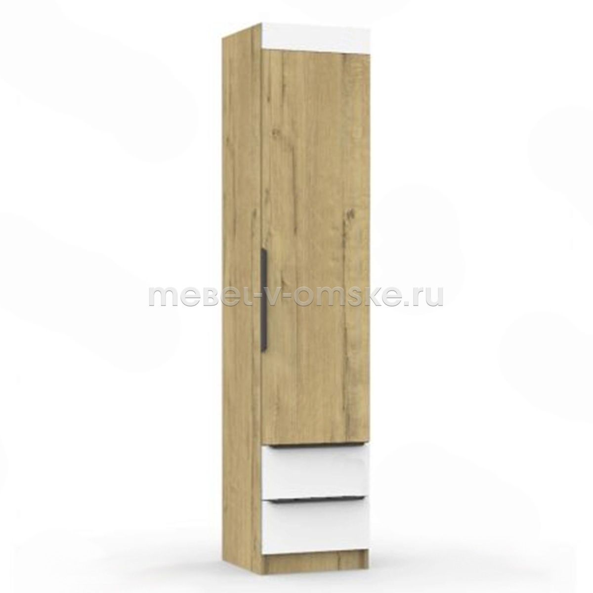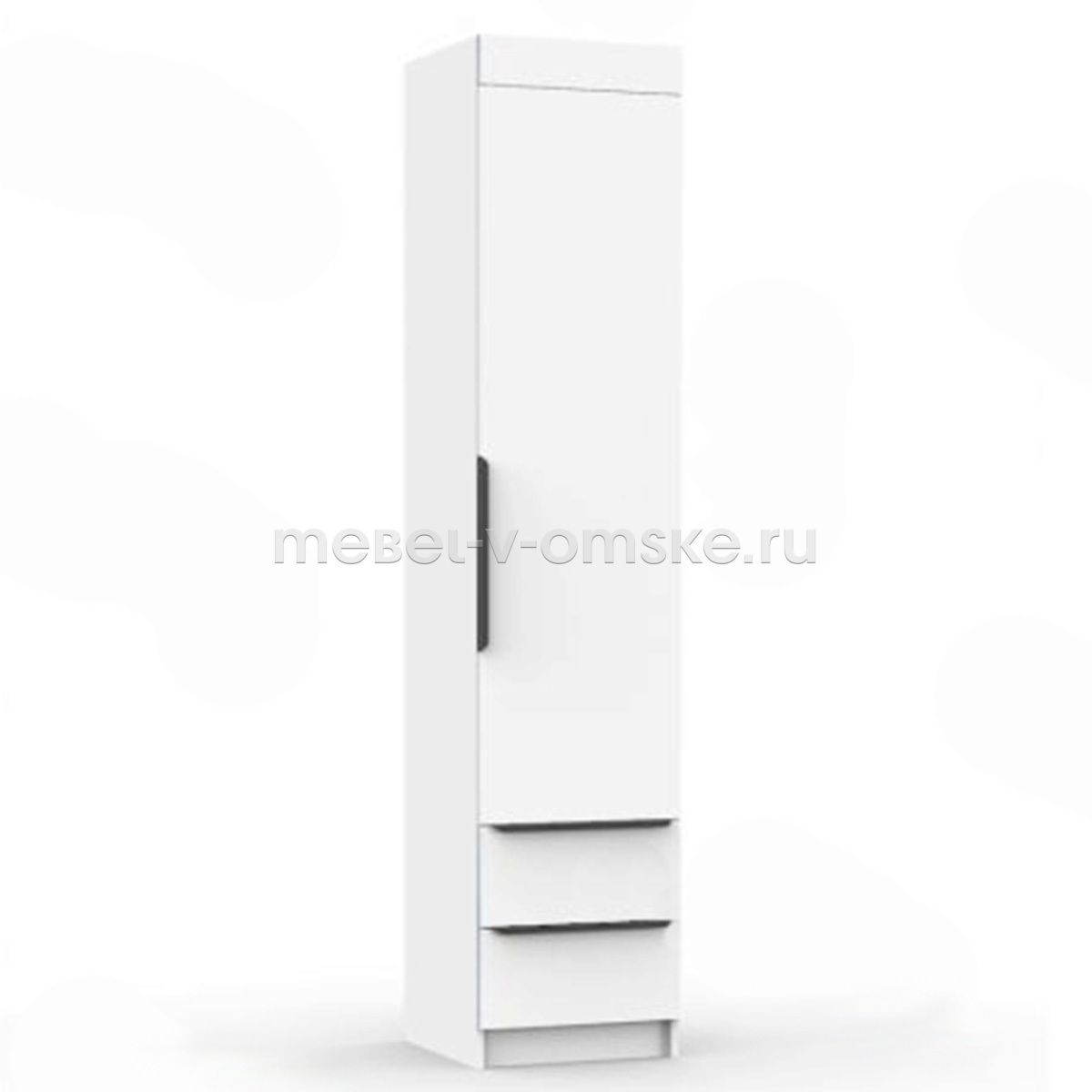 - Конструктив. Пенал оснащен 5 полками за распашной дверью и двумя выдвижными ящиками в основании.
