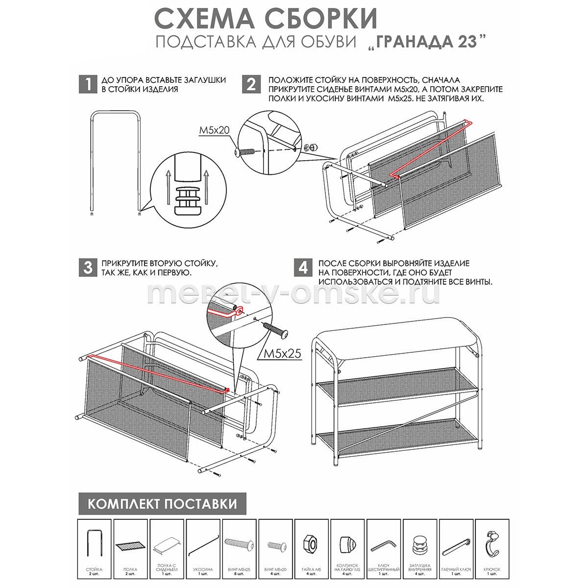 - Функциональность. Надежная сборно-разборная конструкция.Долговечная, благодаря каркасу и полкам из стали. Две полки вместят до 6 пар обуви, а продуманные расстояния между ними позволят разместить как летнюю, так и зимнюю обувь.
