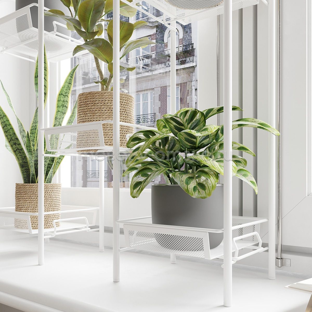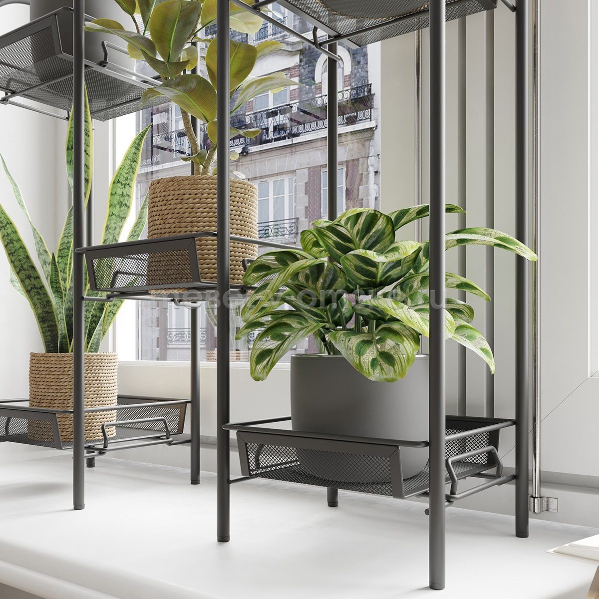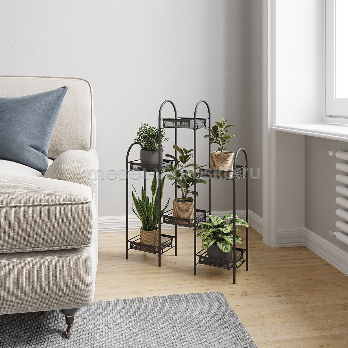 - Надёжность и вместительность: Каждая полка подставки выдерживает максимальную нагрузку до 5 кг, что позволяет размещать даже довольно крупные горшки с растениями.