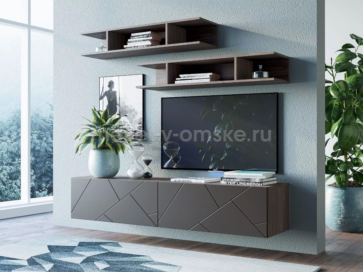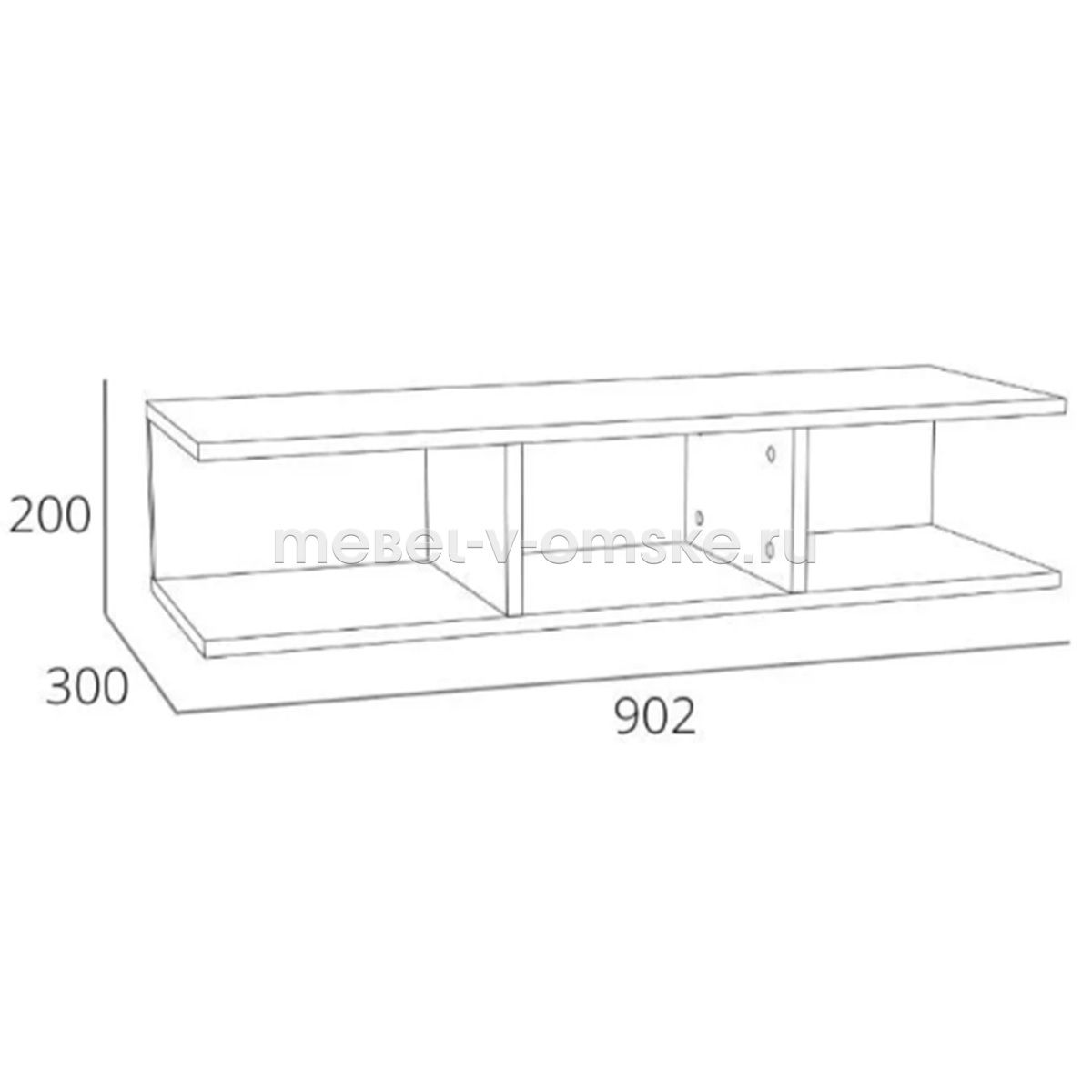 - Конструктив. Полка состоит из трех секций для размещения книг и предметов декора. Данная полка идеально сочетается с навесными шкафами из одноименной коллекции и придает яркий штрих интерьеру гостиной.