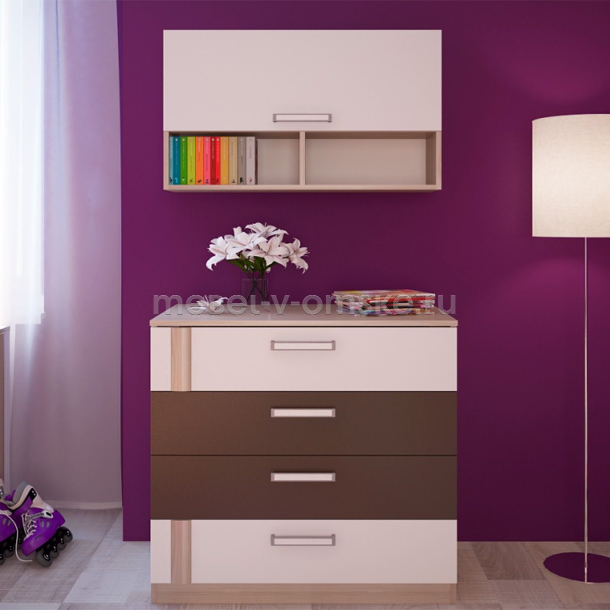 Полка навесная "Волкер" М11 прекрасно дополнит систему хранения в комнате и придаст интерьеру завершенный вид. Сочетание открытых ниш и закрытой секции позволит разместить как любимые сувениры и книги для всеобщего обозрения, так и скрыть личные вещи от посторонних глаз.