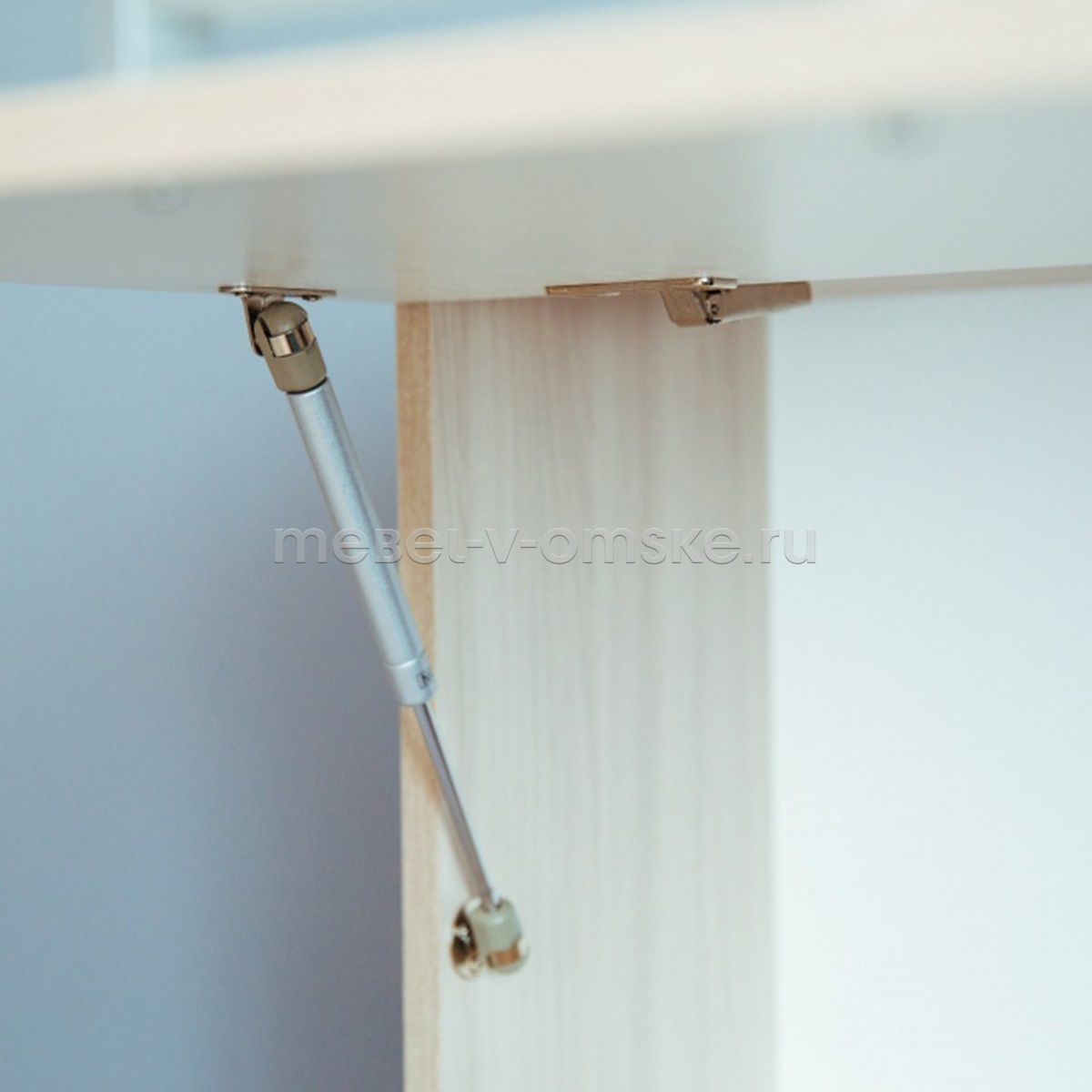 - Фурнитура. Ручки выполнены из пластика в цвете Металлик с белой вставкой 160 мм., фасад на газлифте с надежной фиксацией в открытом виде.