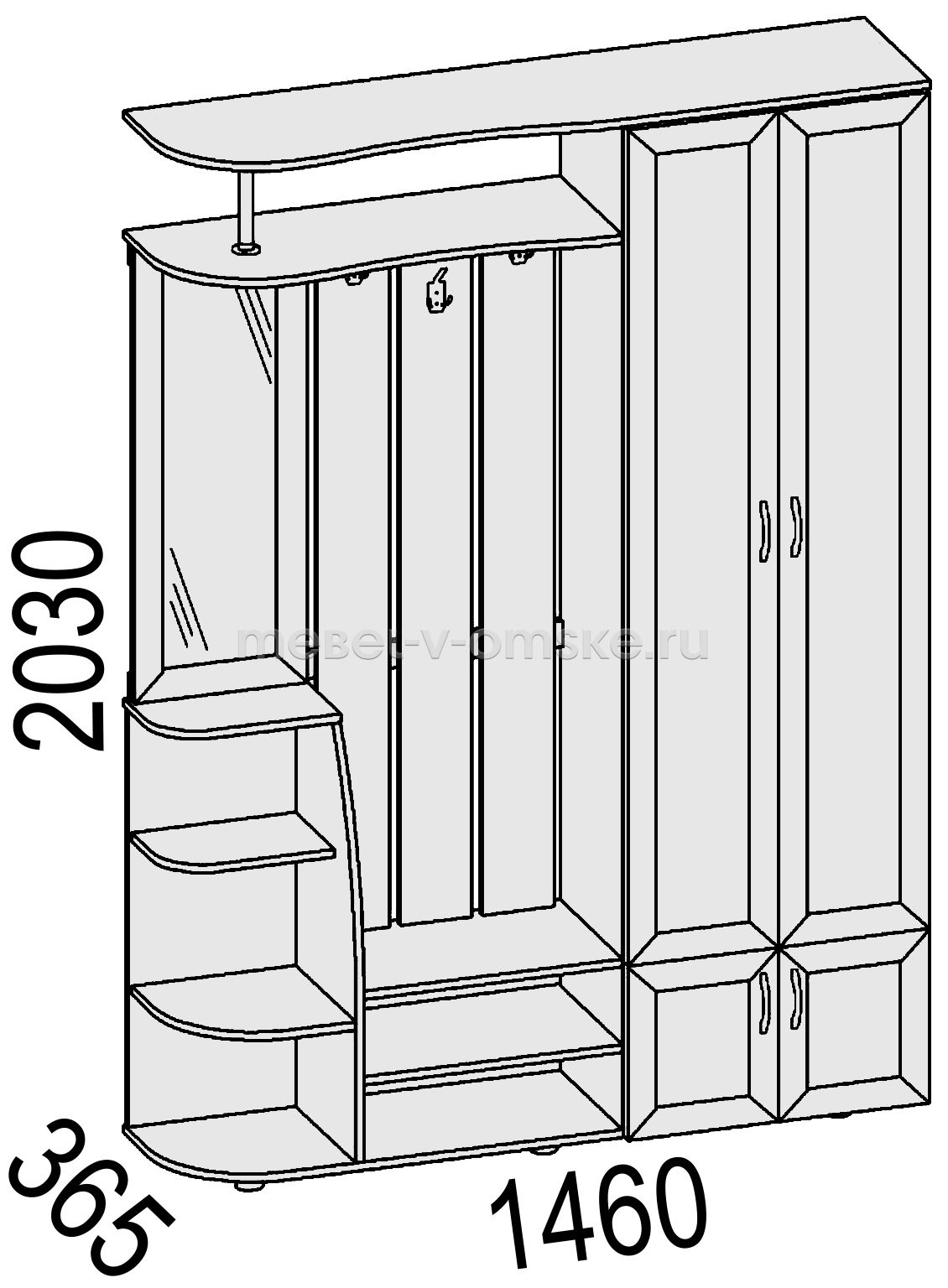 Гарантия12 месяцевШирина1460 ммВысота2030 ммГлубина365 ммБанкетканетМатериал фасадовЛДСП + МДФ + зеркалоМатериал корпусаЛДСПДекор фасадовпрофиль МДФШкаф с дверцамиестьВыдвижные ящикинетЗеркалоестьШтангавыдвижная (микролифт)УстановканапольнаяВес88 кгКоличество упаковок3 штПоставкав разобранном видеПроизводствоОмск -