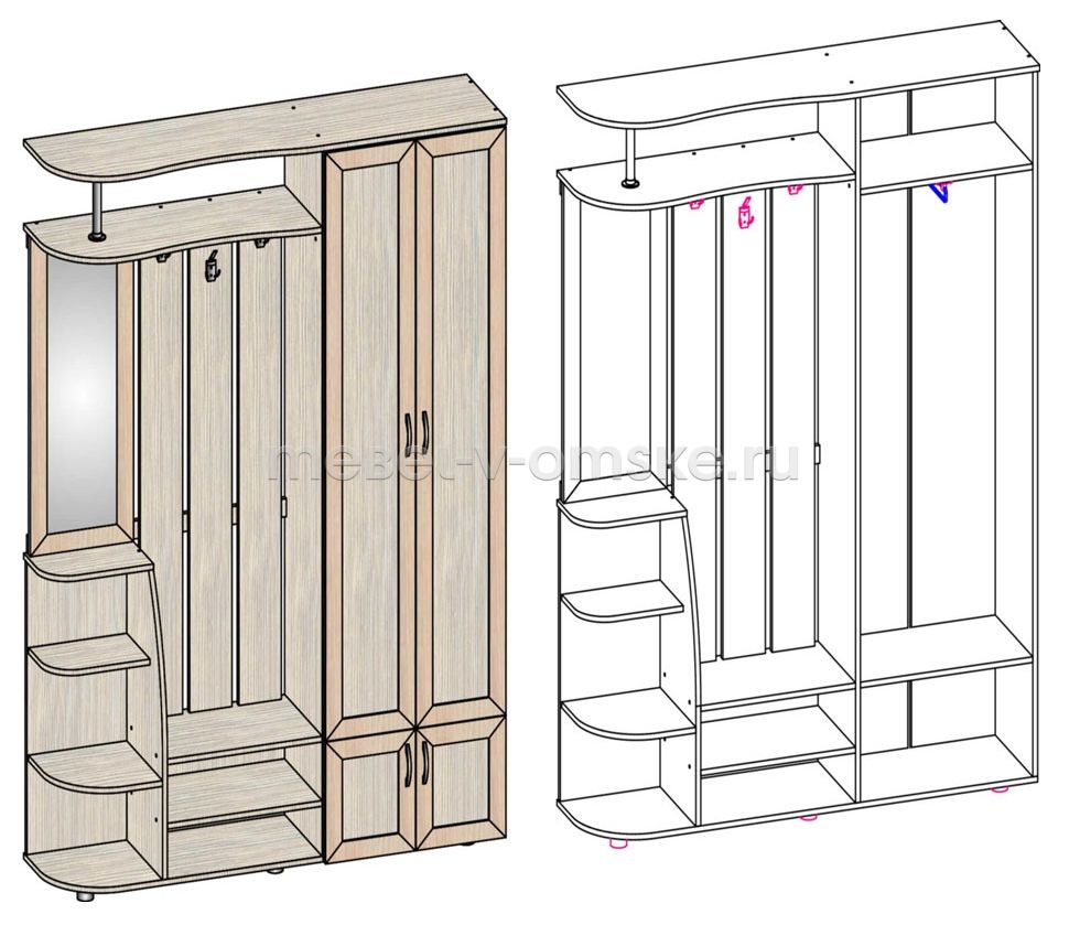 Прихожая «Союз» омского производства обладает рядом неоспоримых достоинств: недорогая, вместительная и компактная, она превосходно сочетает в себе все достоинства классики с современными дизайнерскими решениями.
