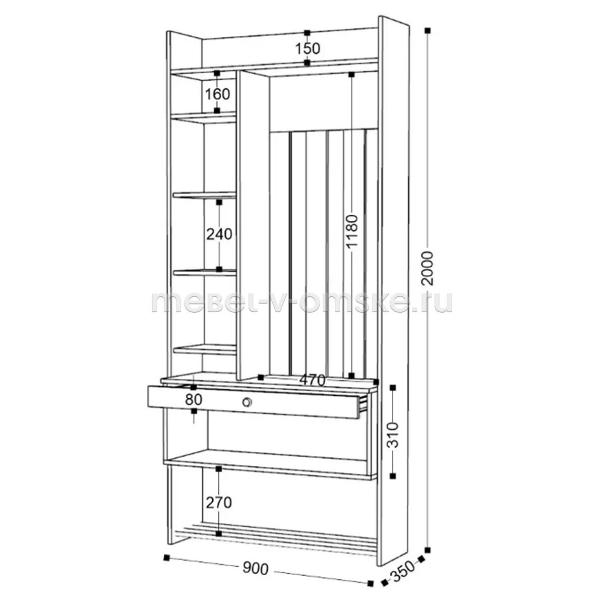 Материалы: ЛДСП 16 мм, кромка ПВХ 0,4 мм., зеркало.