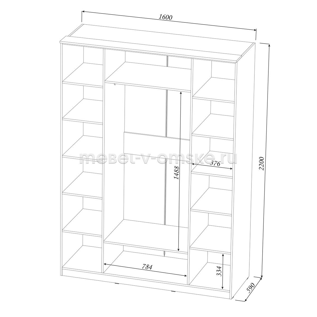 Ширина габаритная1600 ммВысота габаритная2220 ммГлубина габаритная590 ммУгловойнетТип дверейраспашныеЧисло дверей4Материал фасадовЛДСП + МДФДекор фасадовнакладки МДФВыдвижные ящикинетШтангастандартнаяМатериал корпусаЛДСПЗеркалоестьВес200 кгКоличество упаковок6 штПоставкав разобранном видеПроизводствоОмскГарантия12 месяцев -