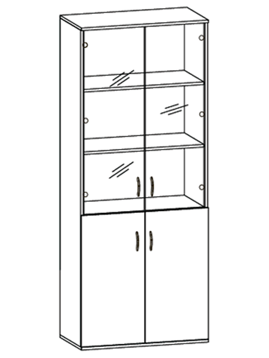 - Верхнее отделение с двумя просторными полками закрывают распашные стеклянные дверки – идеально для размещения папок-скоросшивателей, документов и прочих предметов, которые всегда нужны под рукой.