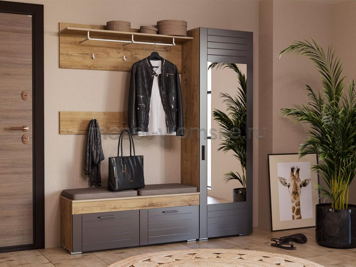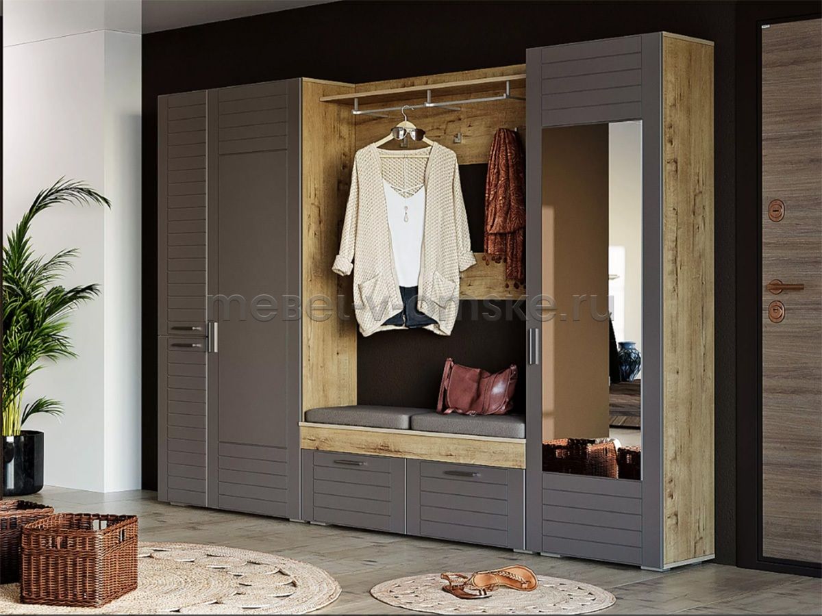- Модульность. Шкаф входит в модульную систему для прихожей, приобрести его можно как самостоятельный предмет интерьера, так и в сочетании с другими модулями данной серии.