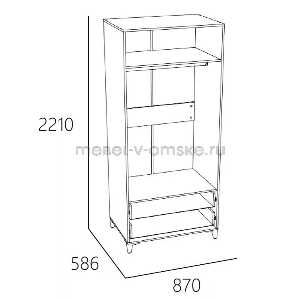 - Конструктив. Отделение с полкой и штангой предназначено для хранения одежды на вешалках, головных уборов, коробок с аксессуарами. Два выдвижных ящика предназначены для сложенной одежды, аксессуаров, личных вещей.