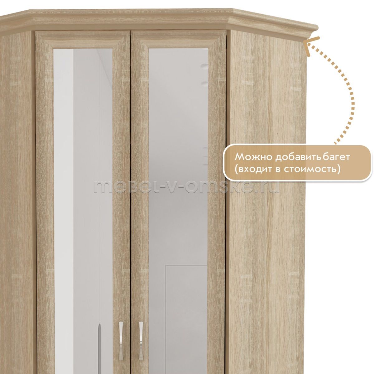 - Багет. По желанию шкаф можно дополнить кароной из МДФ багета (входит в стоимость).