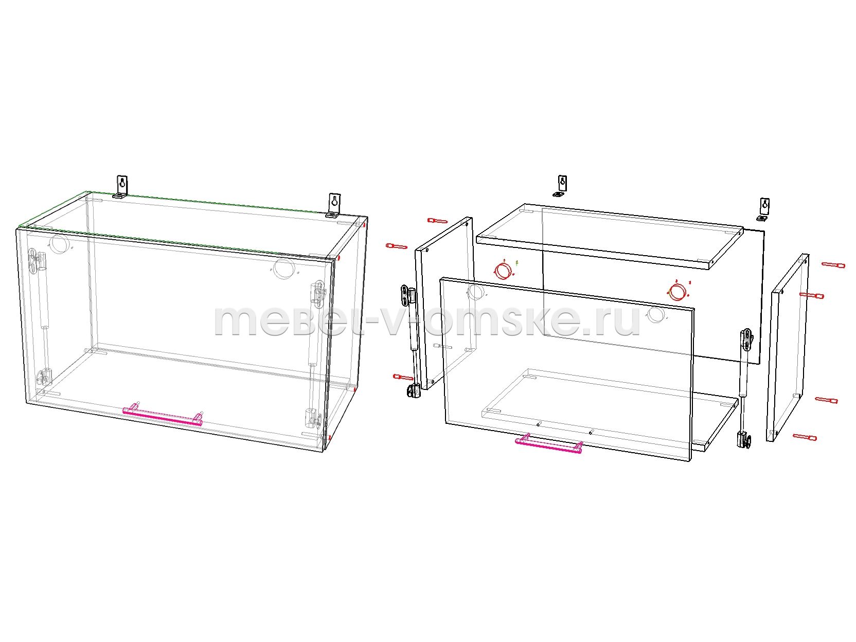 - Газлифты. Все горизонтальные створки комплектуются двумя долговечными газлифтами с индексом сопротивления 50-60N.
