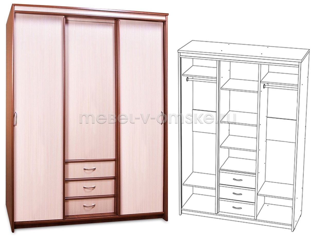 Ширина габаритная1500 ммВысота габаритная2200 ммГлубина габаритная540 ммУгловойнетТип дверейраздвижные (купе)Число дверей3Материал фасадовЛДСП + МДФДекор фасадовпрофиль МДФВыдвижные ящикиестьТип направляющих в ящикахроликовыеШтангастандартнаяМатериал корпусаЛДСПЗеркалонетВес159 кгКоличество упаковок4 штПоставкав разобранном видеПроизводствоОмскГарантия12 месяцев -