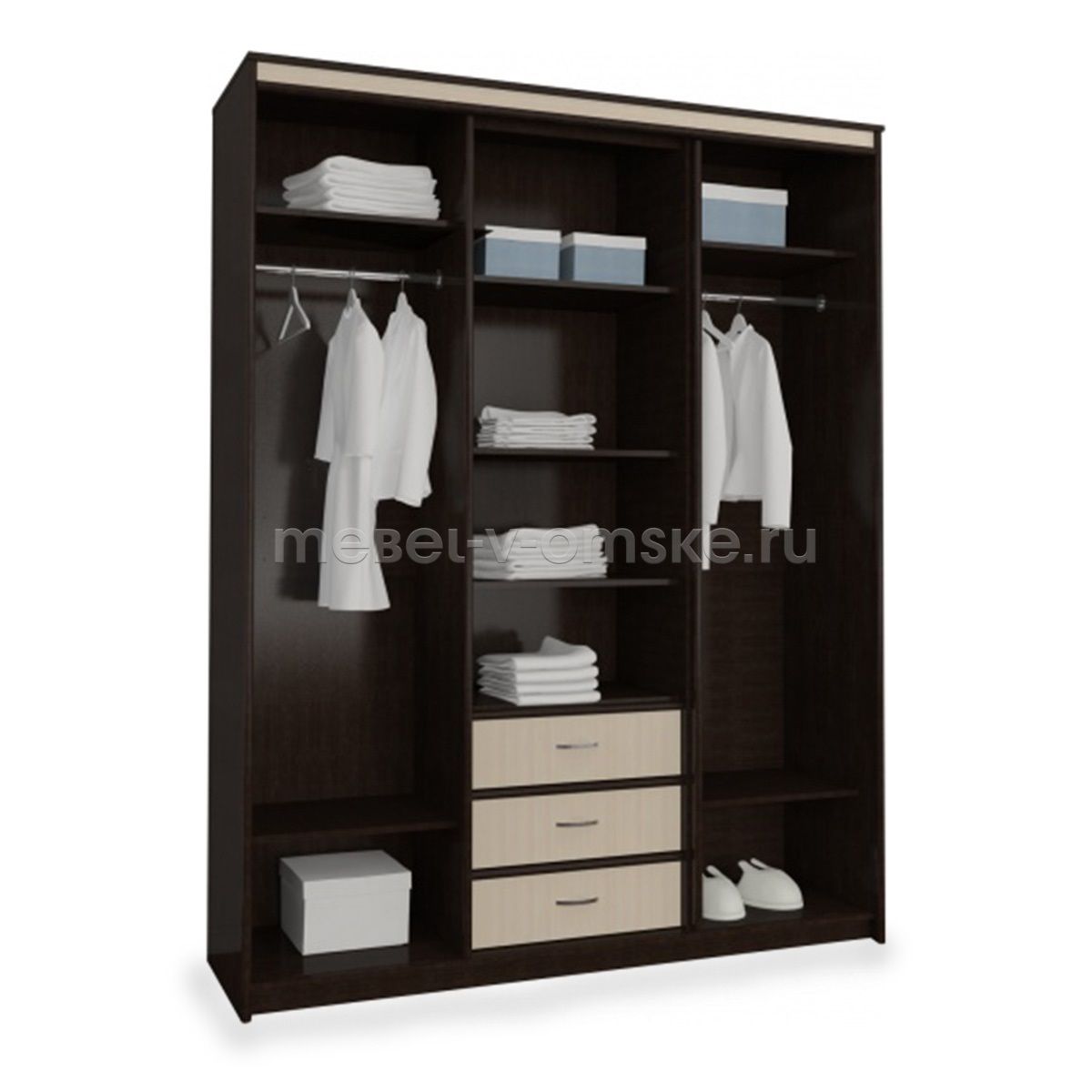 - Отличная функциональность – шкаф оснащён двумя отделениями со штангой для одежды на плечиках, и одним отделением с полками.