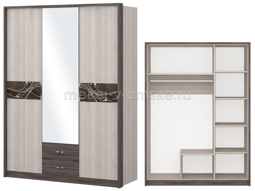 Оригинальный и стильный шкаф «Николь» 3-х дверный из модульной системы для спальни представляет собой функциональную систему хранения, которая станет красивым украшением любой комнаты: спальни, прихожей или гостиной.