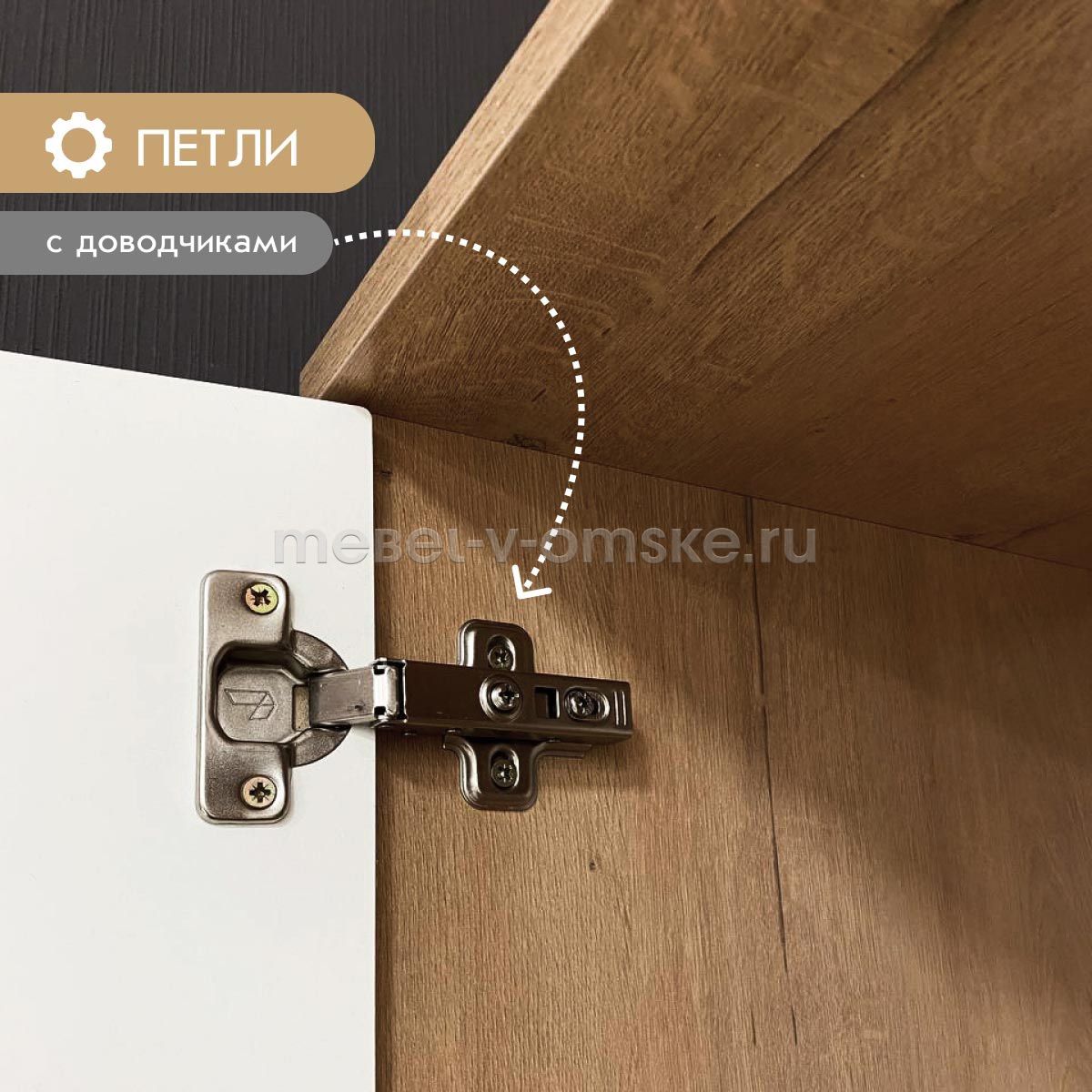 - Современная фурнитура: Петли с доводчиками обеспечивают плавное и бесшумное закрывание дверей, а широкие пластиковые опоры гарантируют устойчивость и бережное отношение к напольному покрытию.