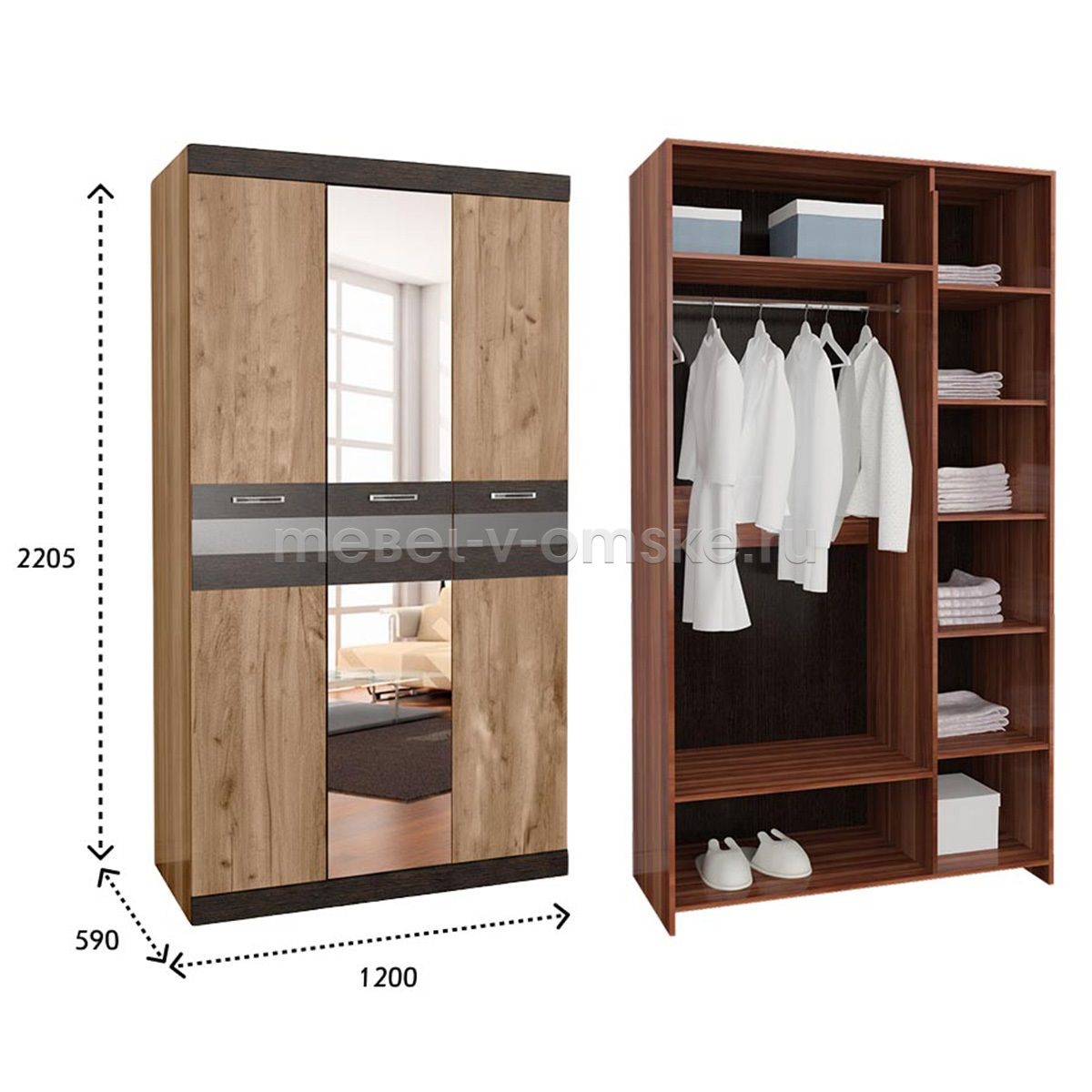Ширина габаритная1200 ммВысота габаритная2220 ммГлубина габаритная585 ммУгловойнетТип дверейраспашныеЧисло дверей3Материал фасадовЛДСП + МДФ + зеркалоДекор фасадовстеклянные вставкиВыдвижные ящикинетШтангастандартнаяМатериал корпусаЛДСПЗеркалоестьВес169 кгКоличество упаковок4 штПоставкав разобранном видеПроизводствоОмскГарантия12 месяцев -
