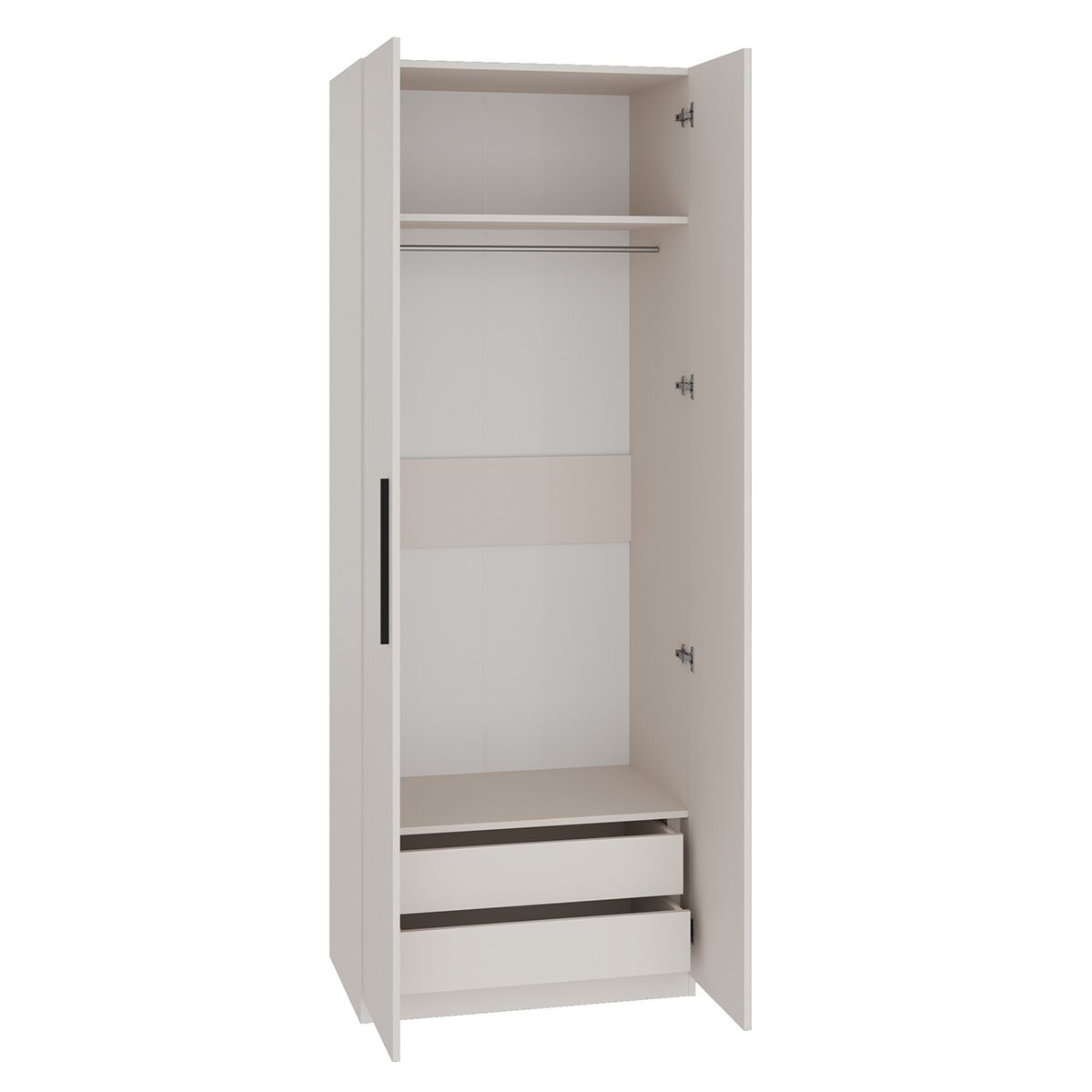 - Конструкция. Внутри шкафа расположена полка и прочная штанга, которые позволяют удобно разместить все ваши вещи. Дополнительно внутри шкафа есть два выдвижных ящика для удобного размещения белья или аксессуаров.