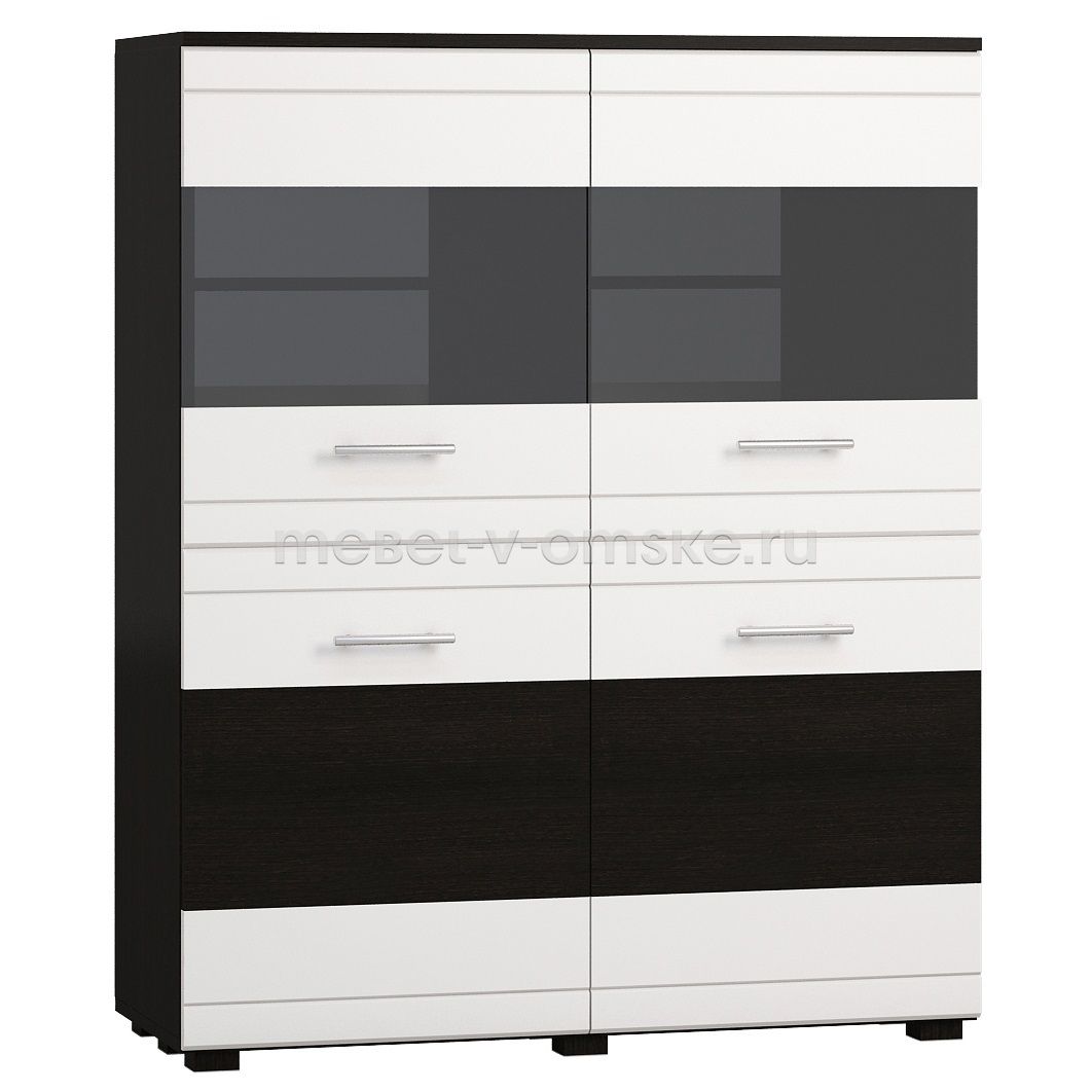 Шкаф-витрина "Квартал" 4-х дверный поможет обустроить гостиную в стиле минимализм.